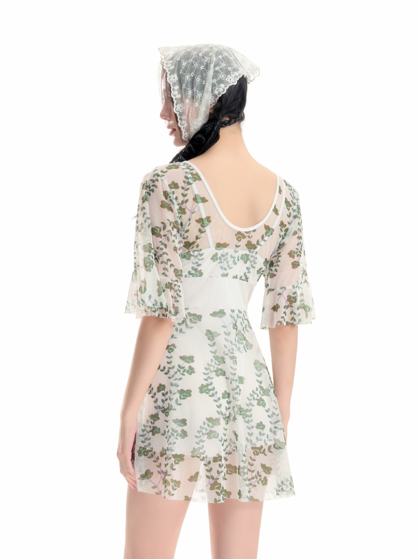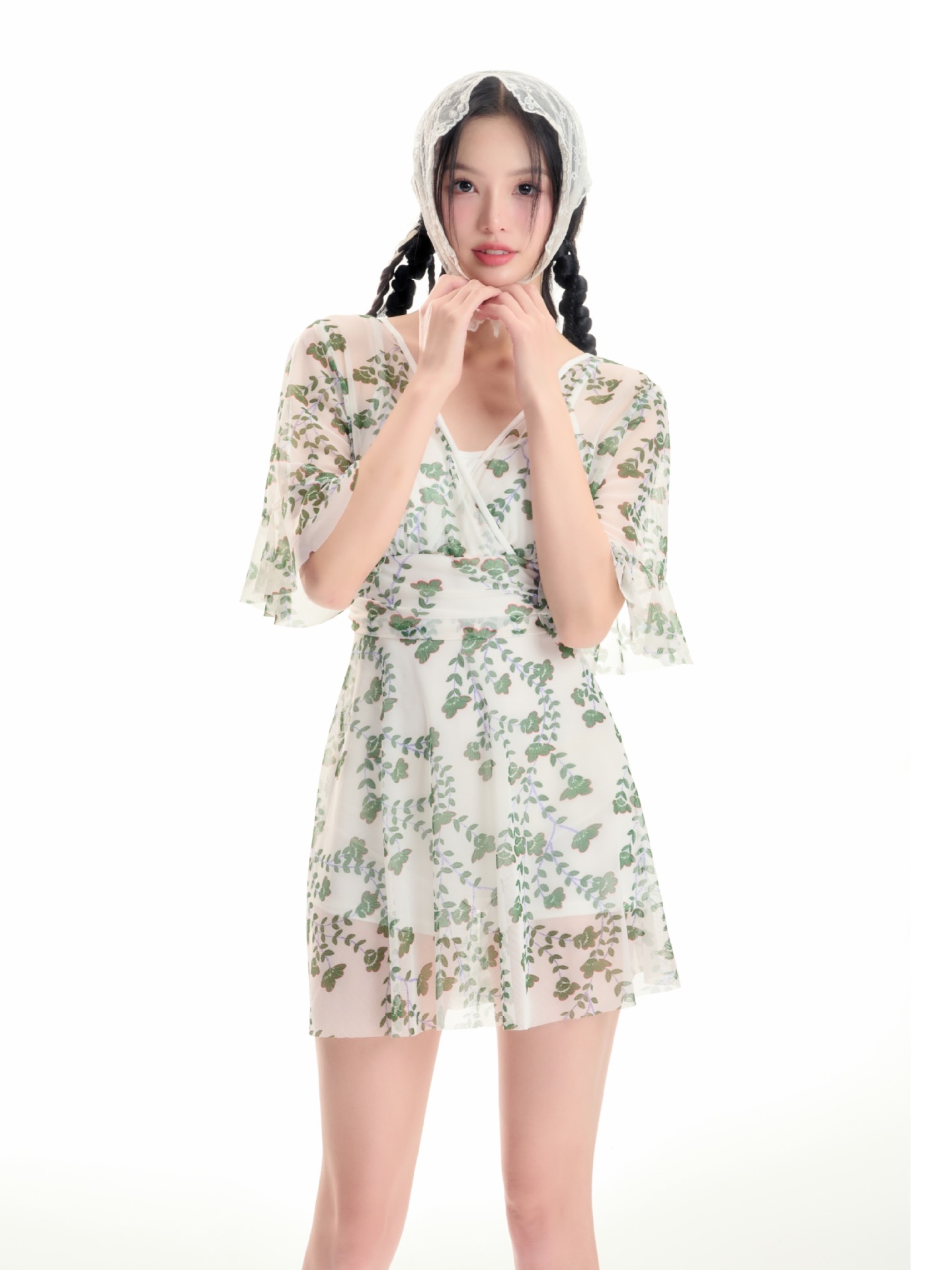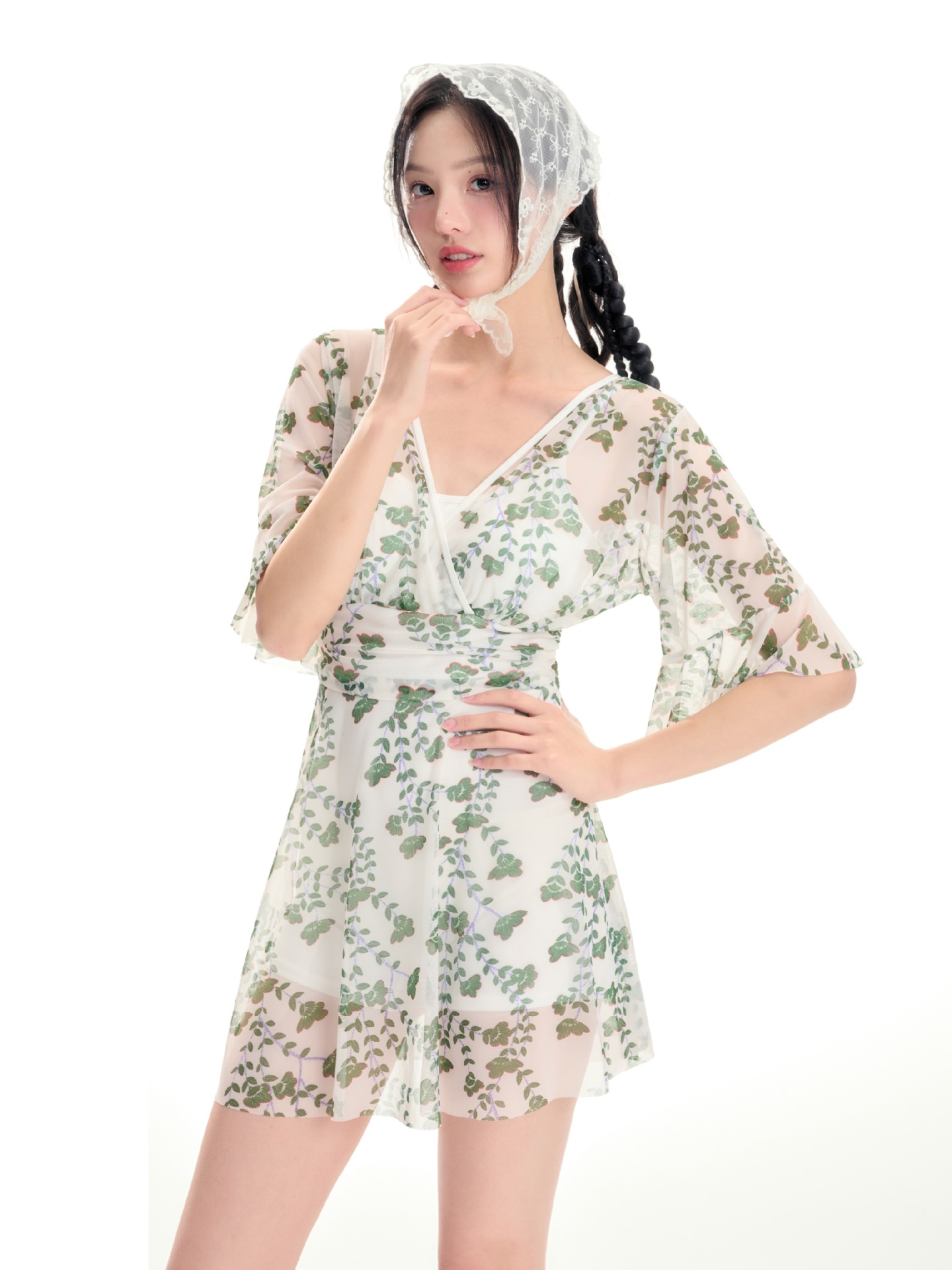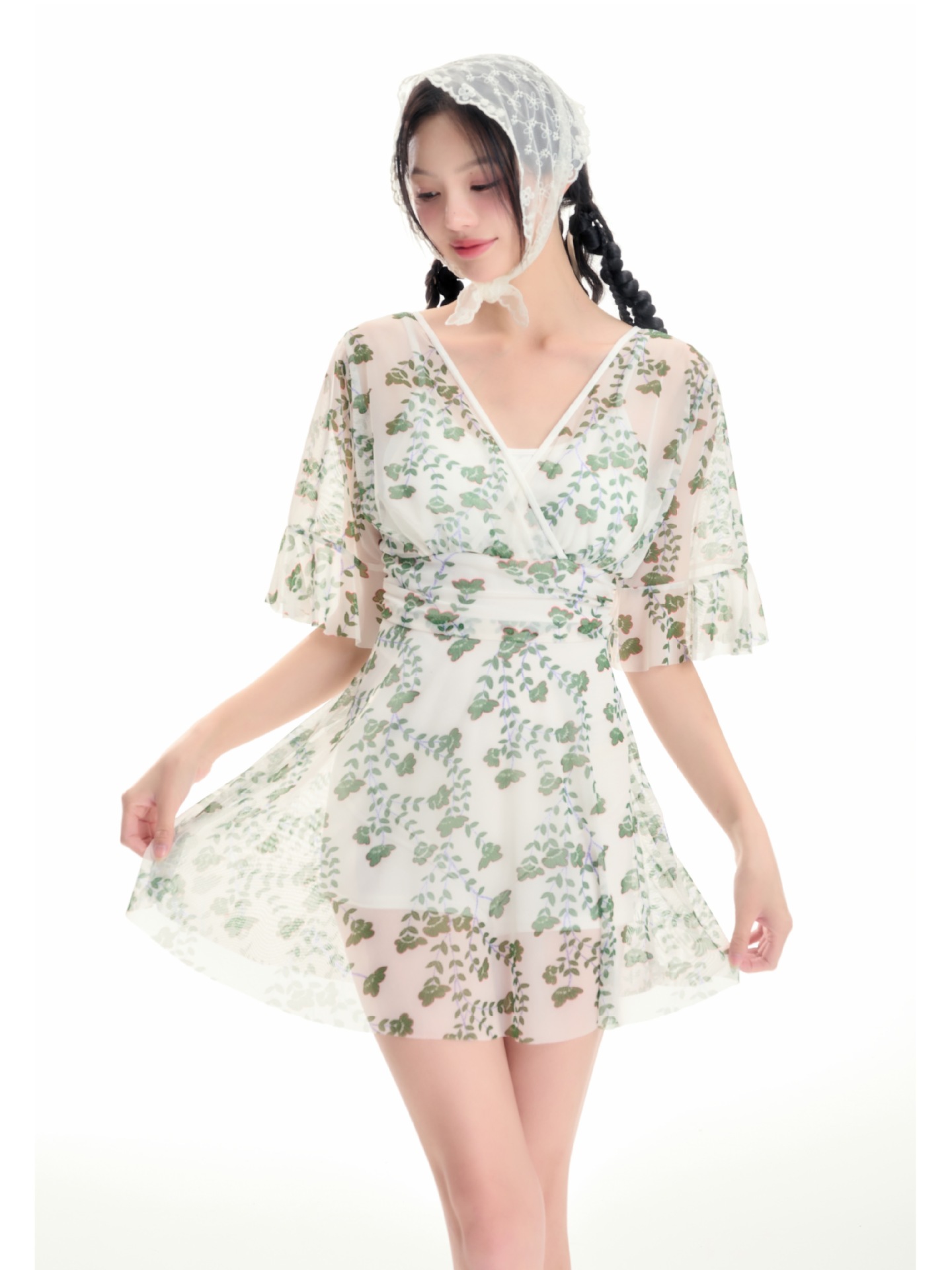 新款微胖大码胖mm泳衣女连体碎花保守显瘦遮肚200斤温泉度假