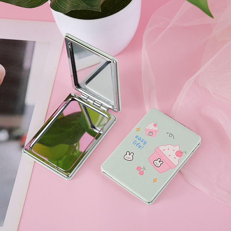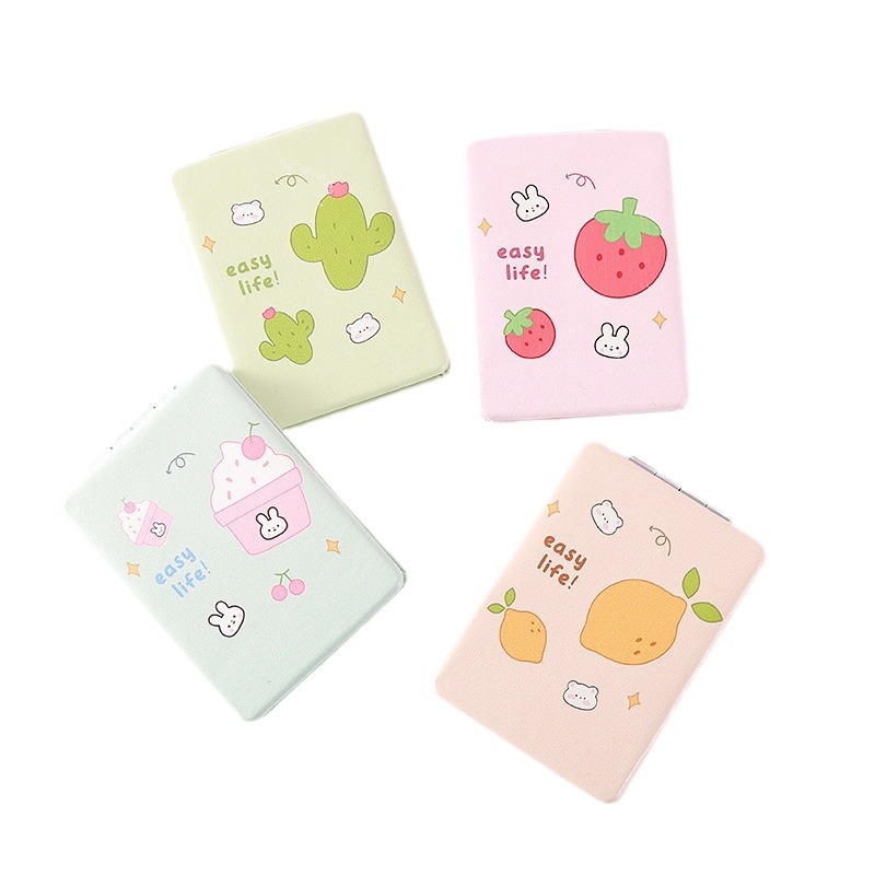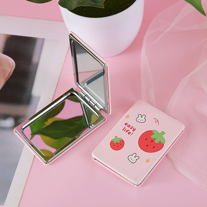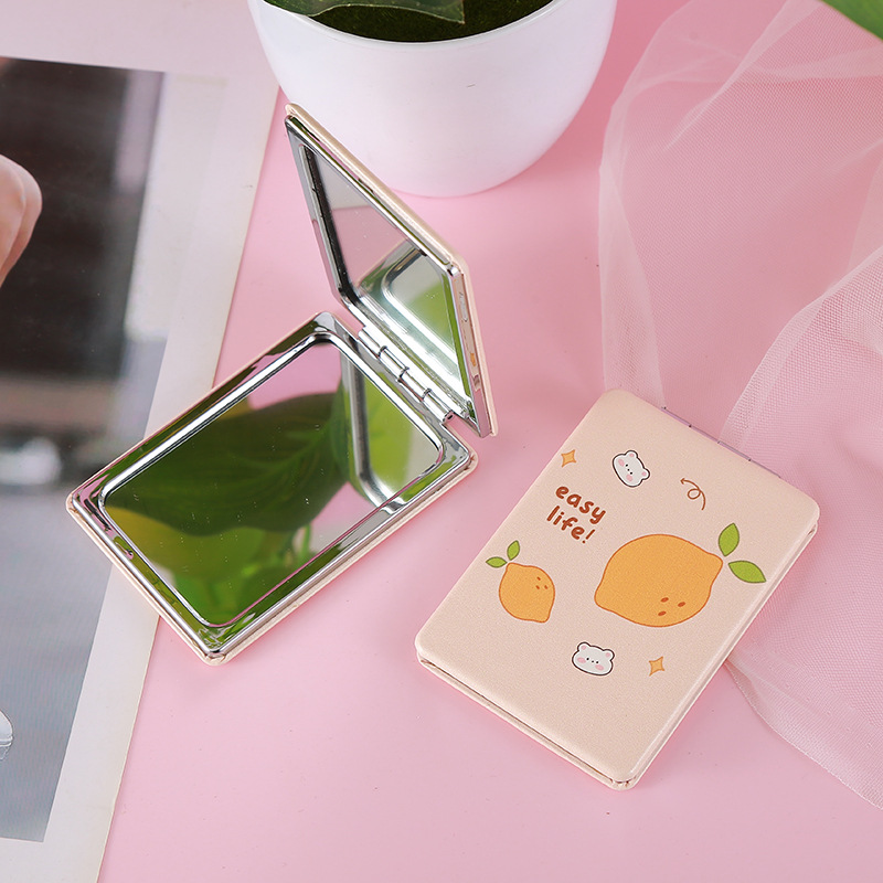 新款水果系列长方形折叠镜化妆镜便携式学生手持镜补妆镜双面PU材