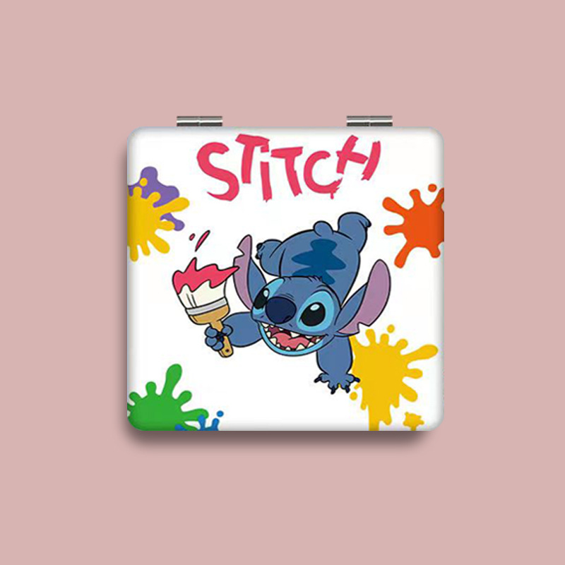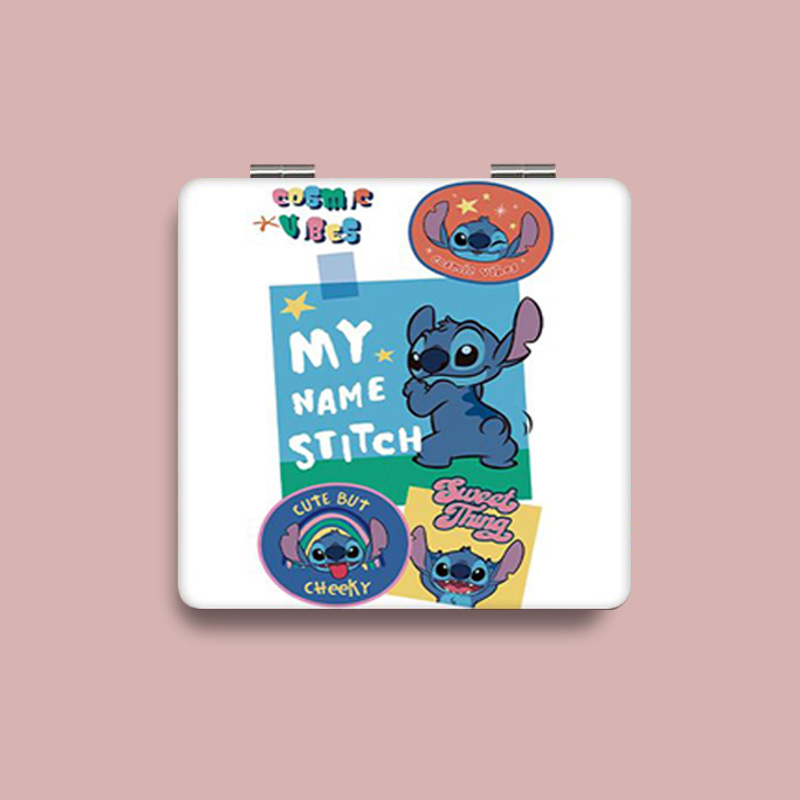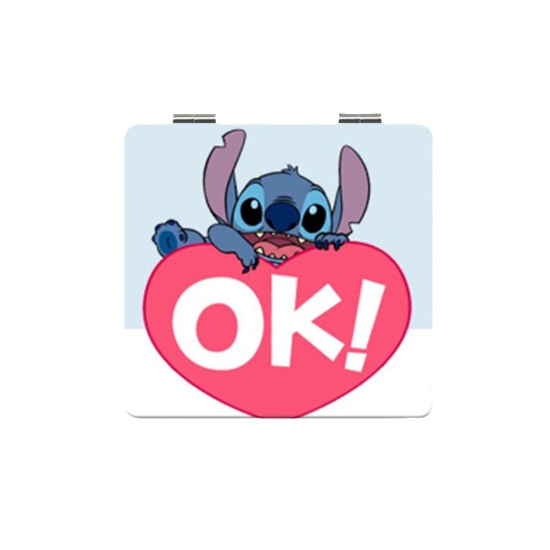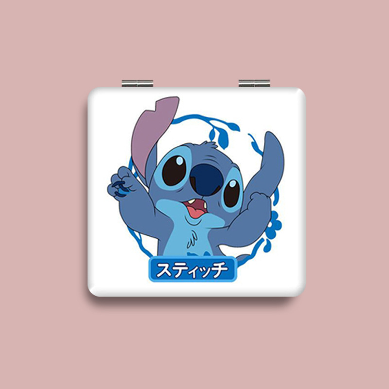 史迪仔化妆镜迷你便携式折叠小镜子卡通移动双面镜梳妆镜方形红色