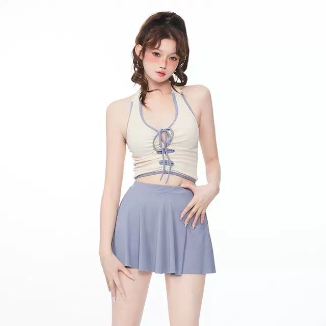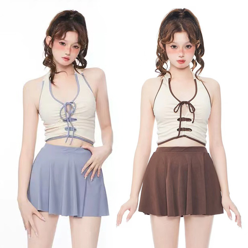 泳衣女款分体两件套吊带显瘦保守时尚ins风露背少女温泉泳装