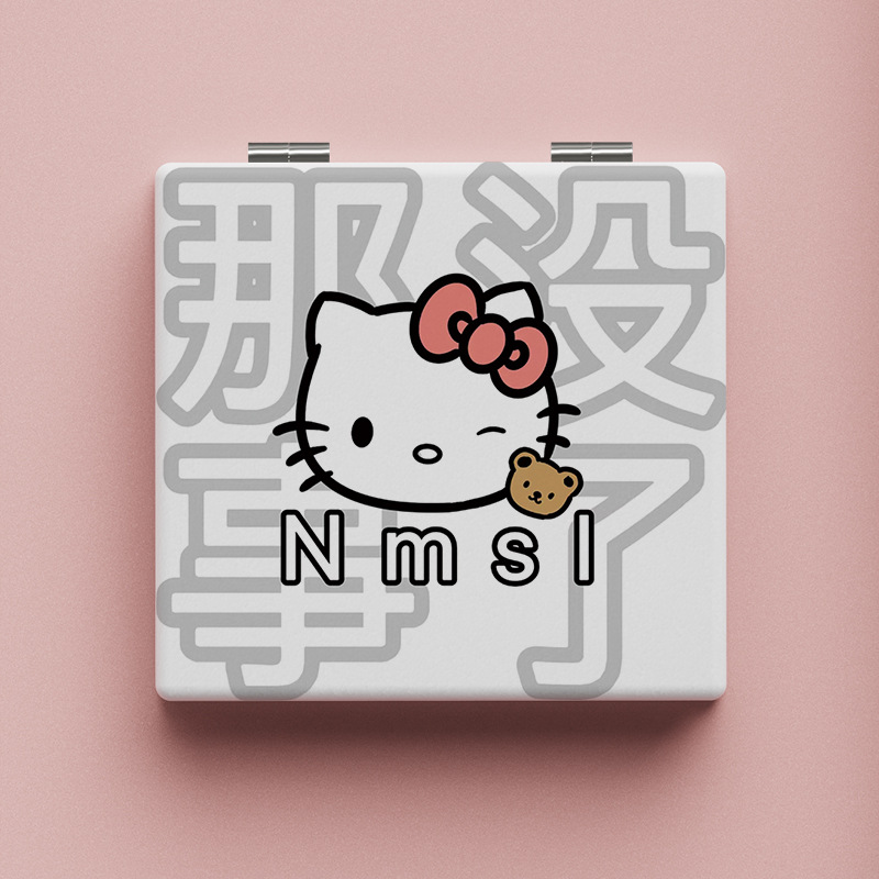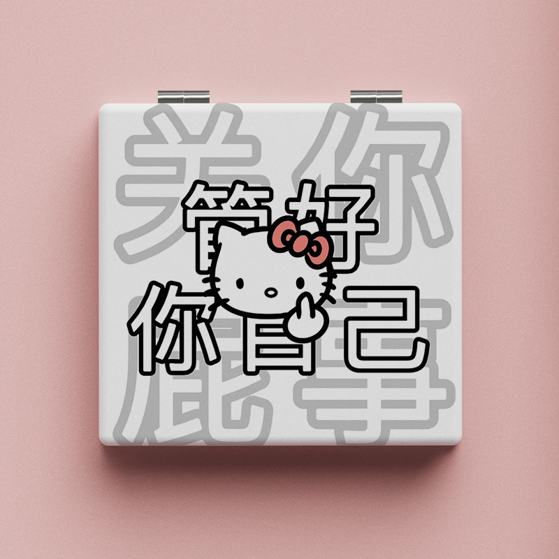 搞怪个性kitty猫小镜子学生手持化妆镜便携式随身折叠镜双面镜子