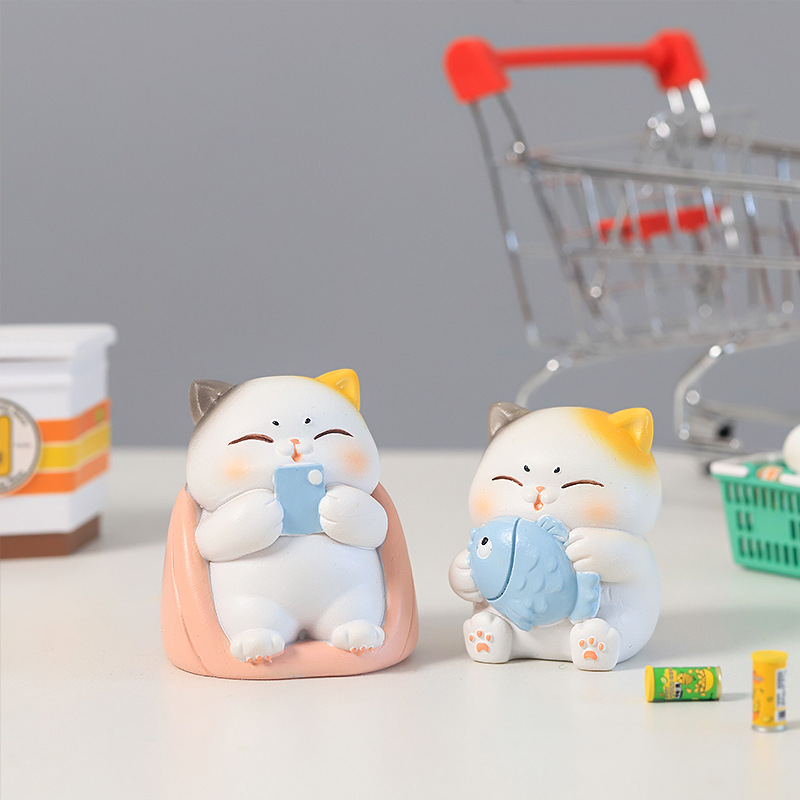 可爱办公室树脂打工小猫公仔装饰摆件创意卡通桌面猫咪小摆件