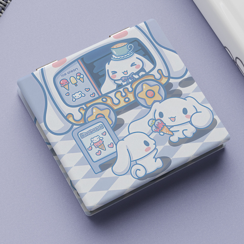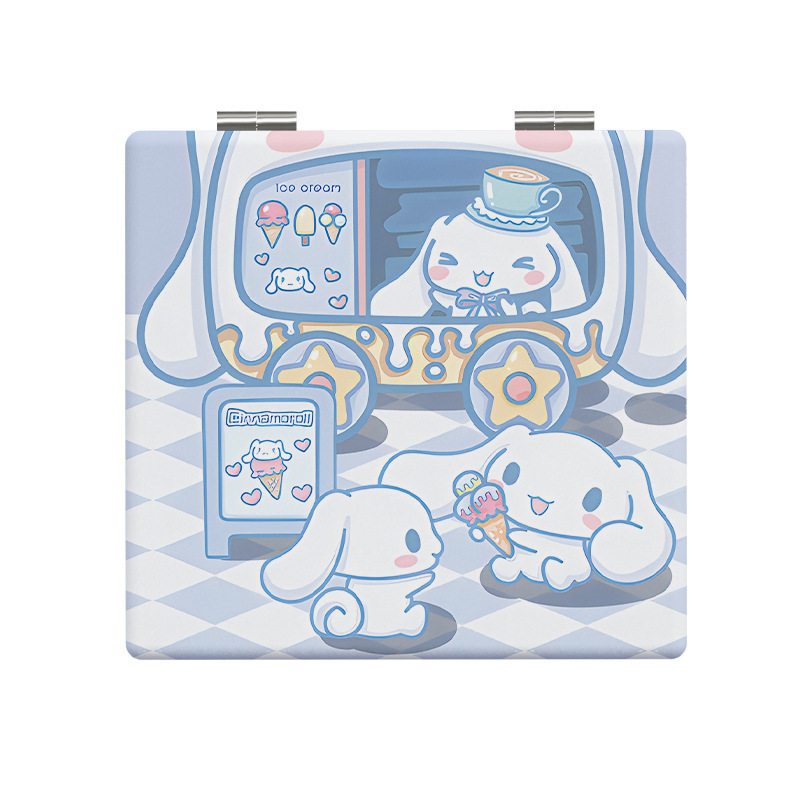 皮革化妆镜_简约时尚随身小镜子卡通可爱梳妆镜PU折叠镜