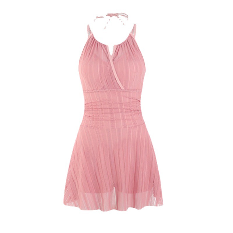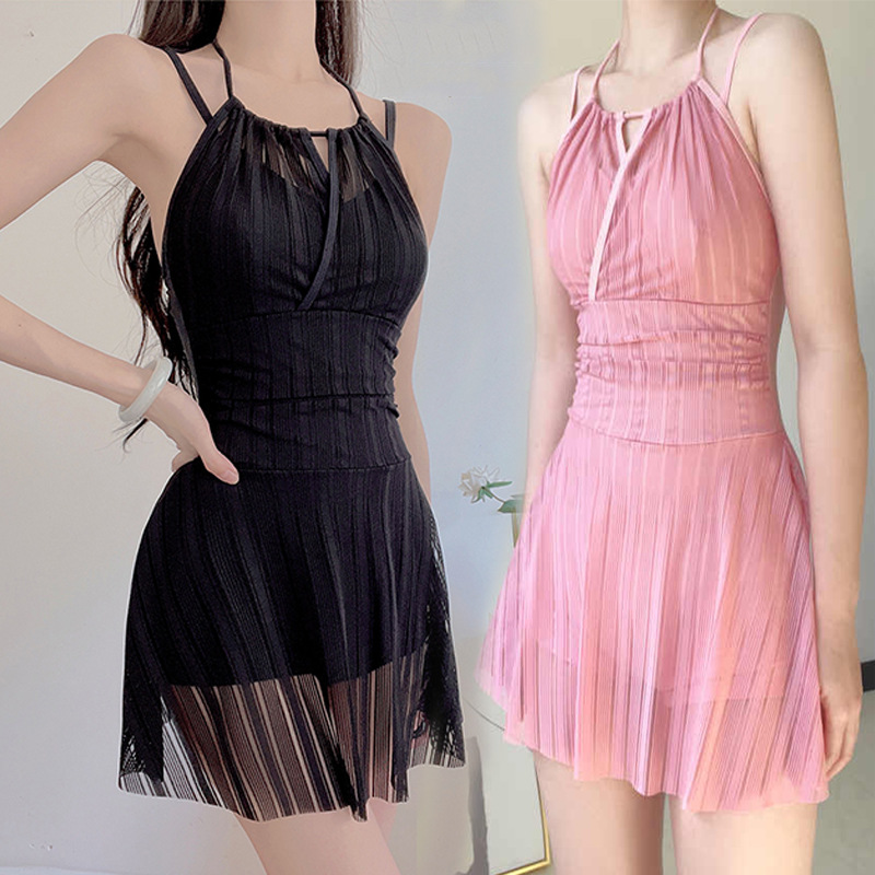 泳衣女款连体吊带纯色泳装时尚辣妹连衣裙式性感美背显瘦泳衣