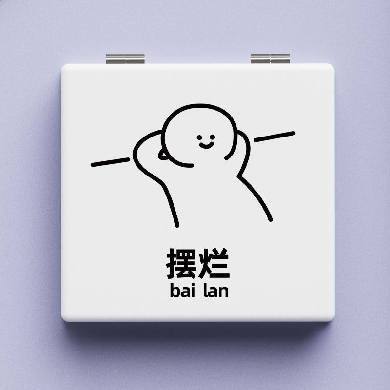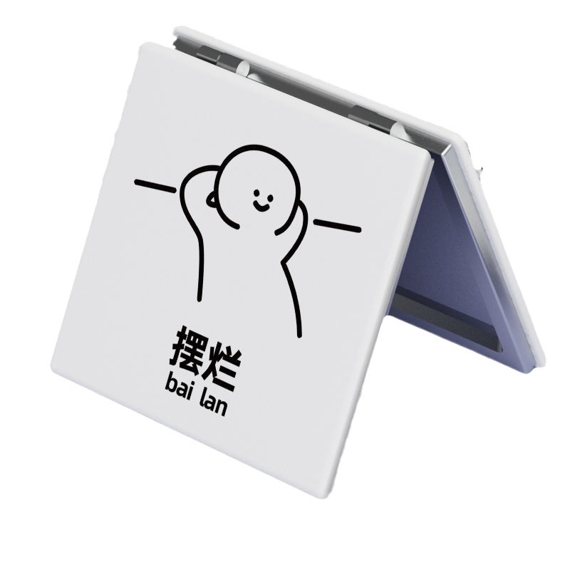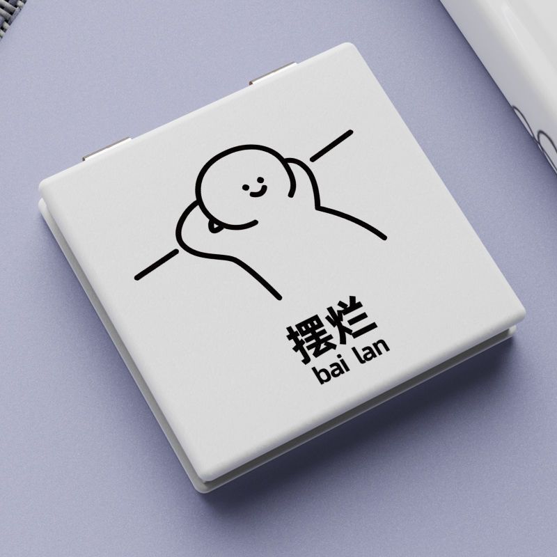 摆烂风随身便携镜子简约化妆镜学生折叠可爱小女生补妆镜随身带