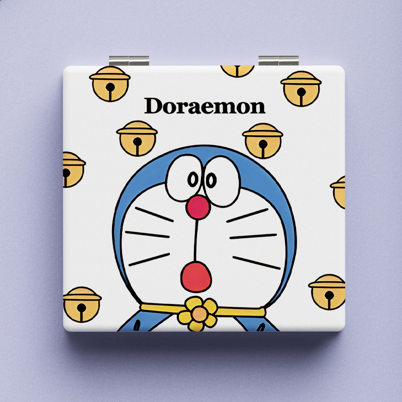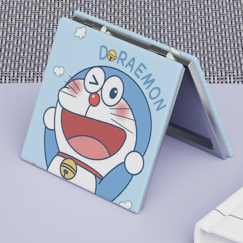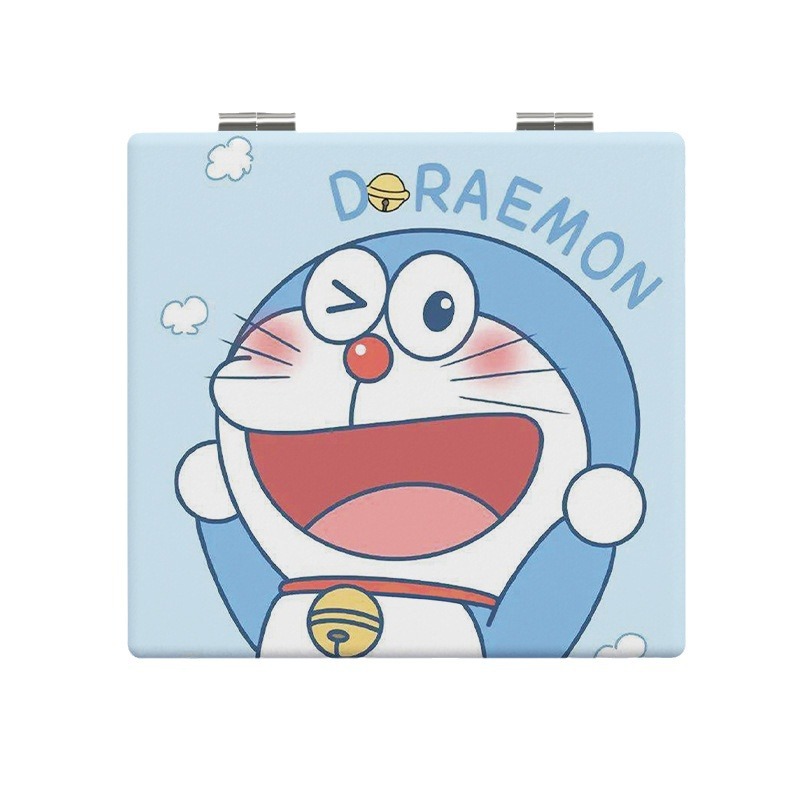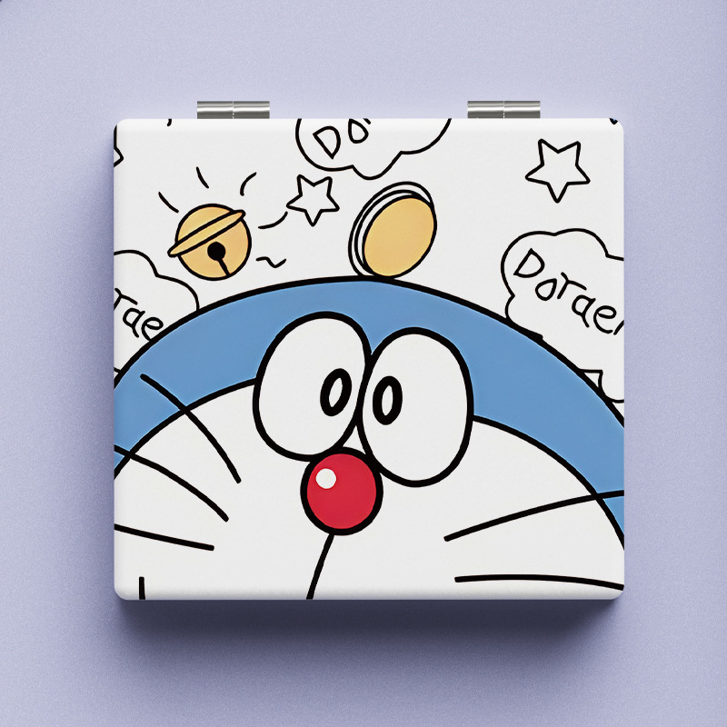 可爱卡通图案化妆镜迷你便携式小镜子方形少女风双面镜PU皮美妆镜