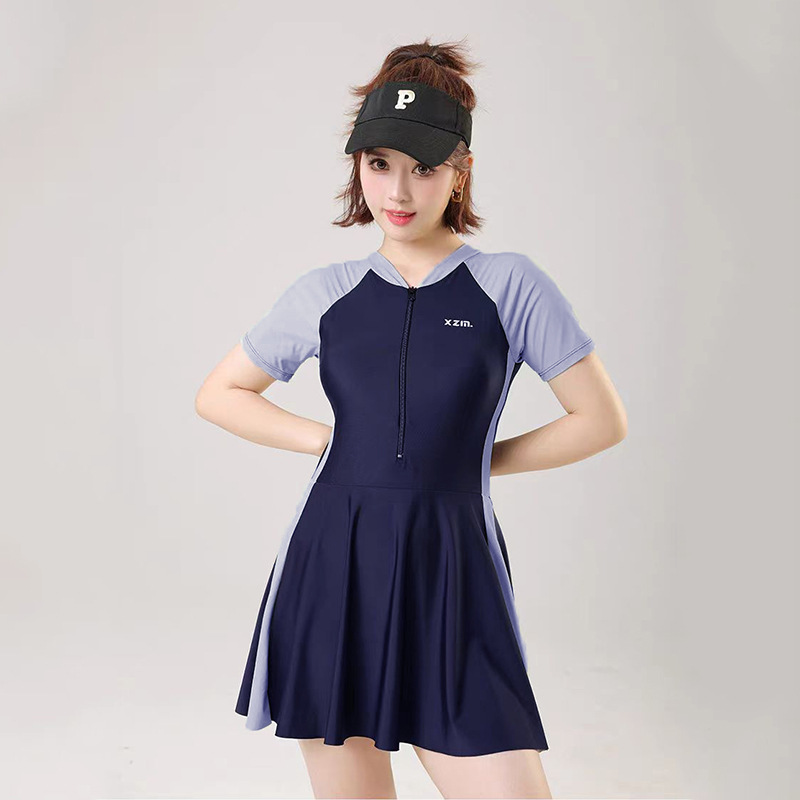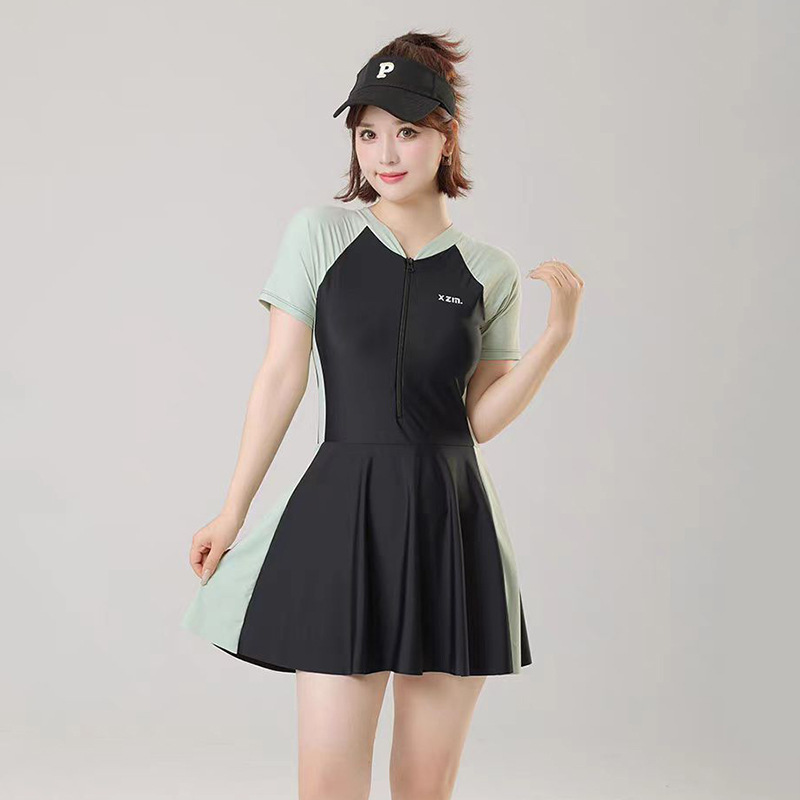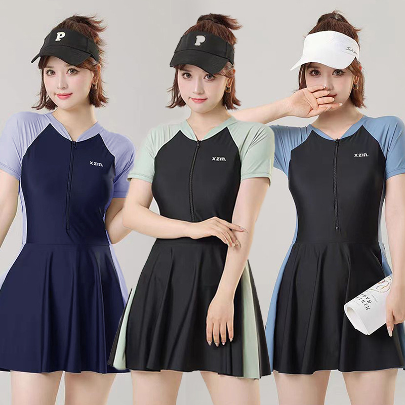 大码泳衣女连体特大特肥运动遮肉韩版小清新保守连衣裙式温泉泳装