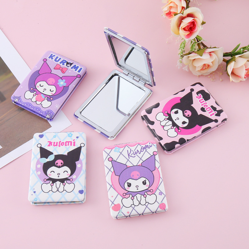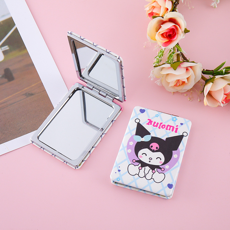 便携式迷你长方形随身化妆镜可爱少女心学生折叠双面小镜子库洛米