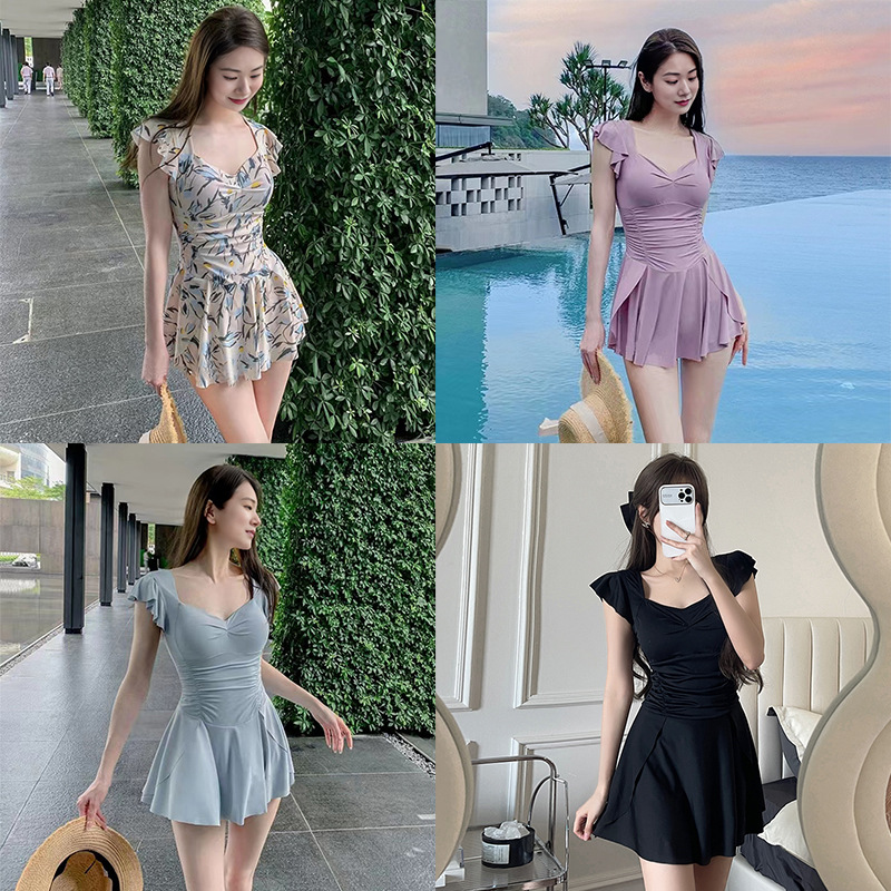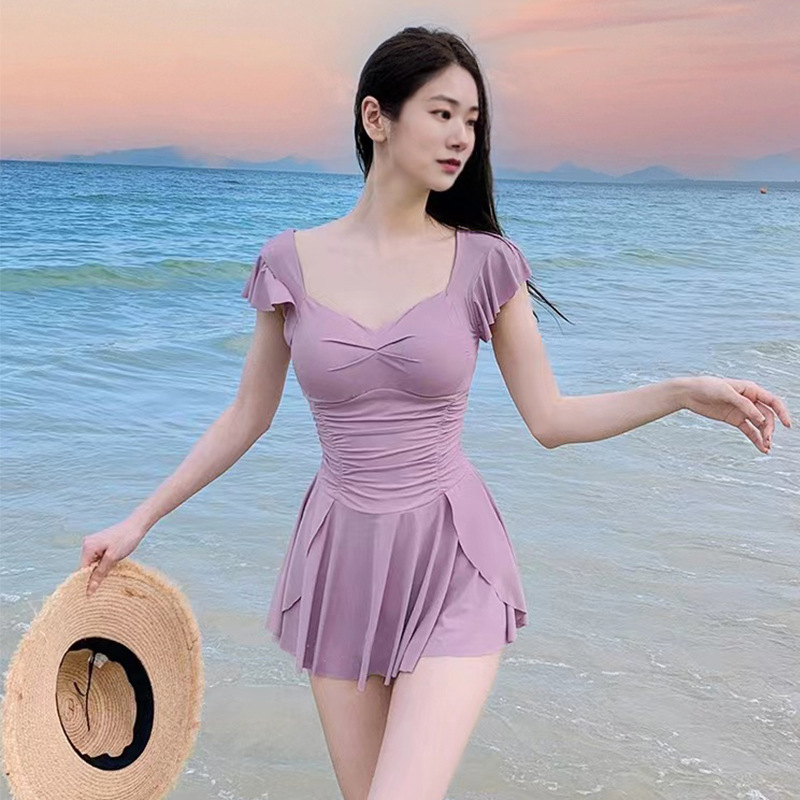 泳衣女连体简约修身保守显瘦连衣裙温泉泳装新款度假泳衣