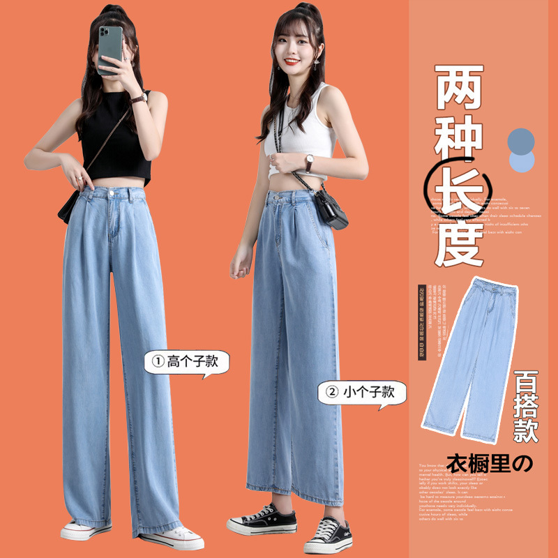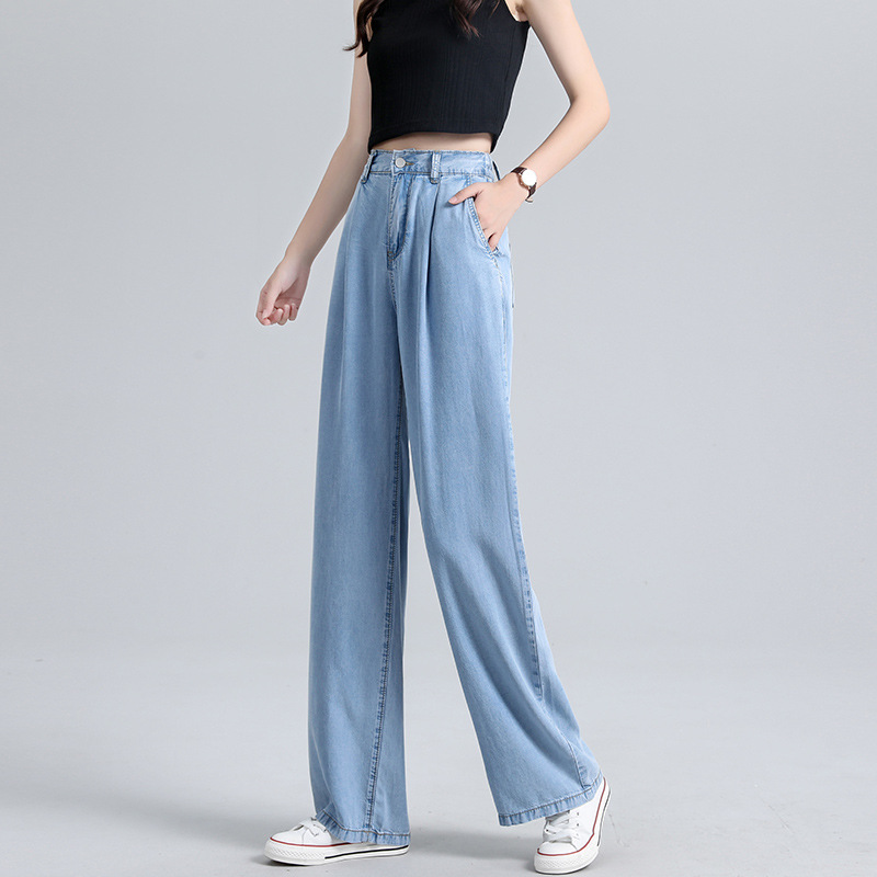 高腰阔腿仿天丝牛仔裤女夏装垂感薄款宽松冰丝直筒裤长裤网红女装