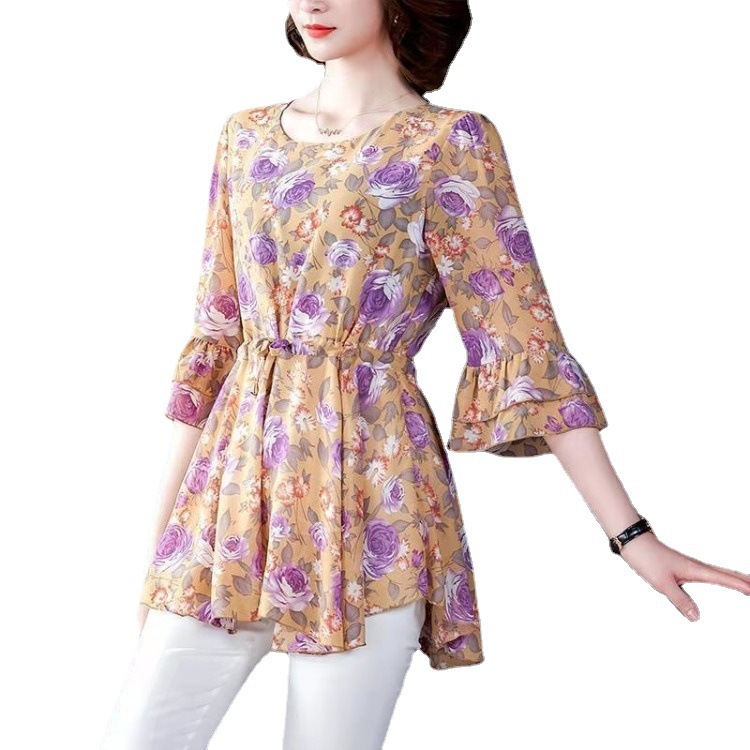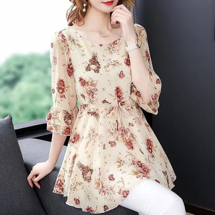 碎花短袖仿冰丝女夏季新款韩版洋气气质优雅女装收腰显瘦小衫