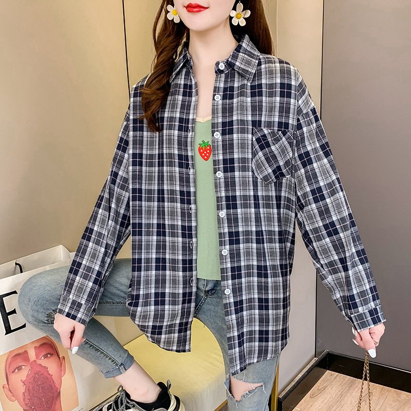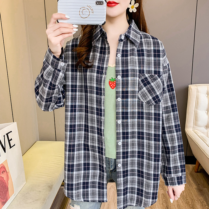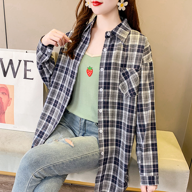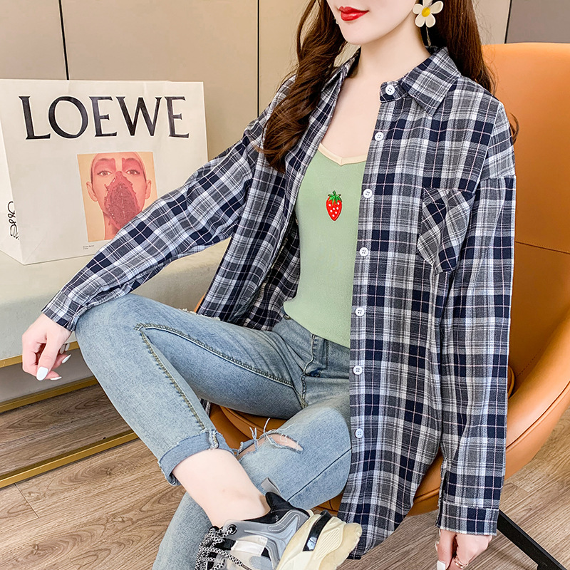 实拍【70涤30棉】休闲百搭格子衬衫女上衣外套秋季新款830#