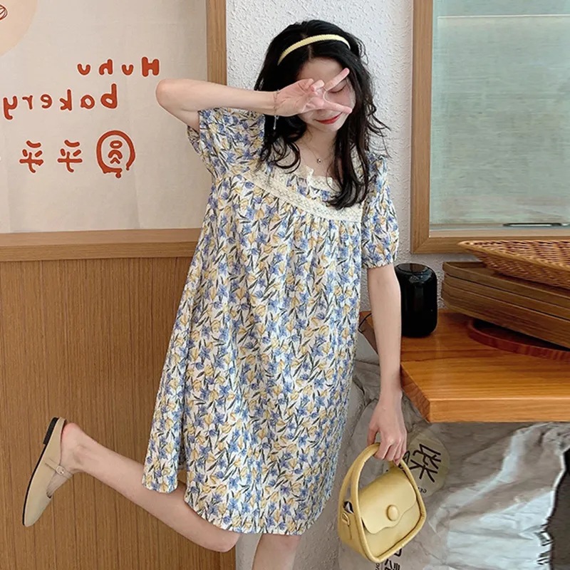 孕妇夏装洋气碎花连衣裙时尚款大码遮肚中长款孕妈春夏天潮妈裙子
