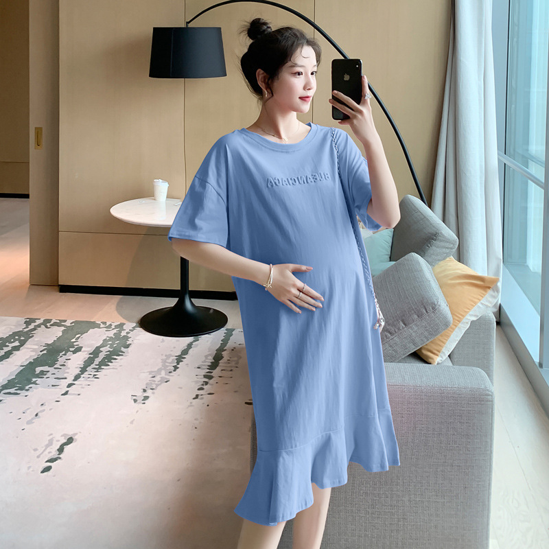 孕妇装夏装上衣夏季时尚印花宽松T恤中长款孕妇连衣裙潮裙子