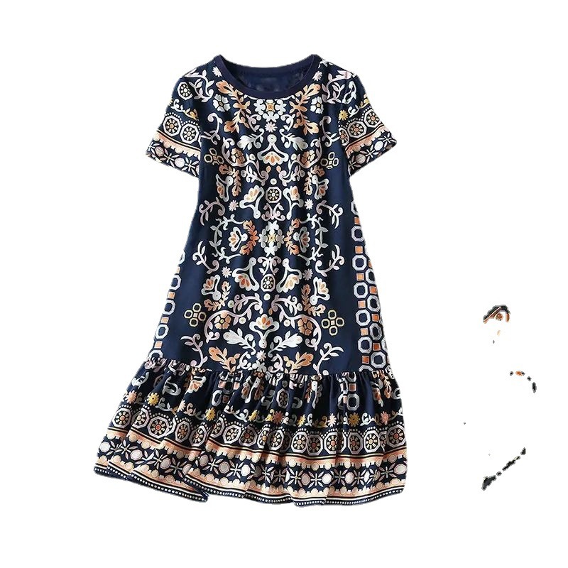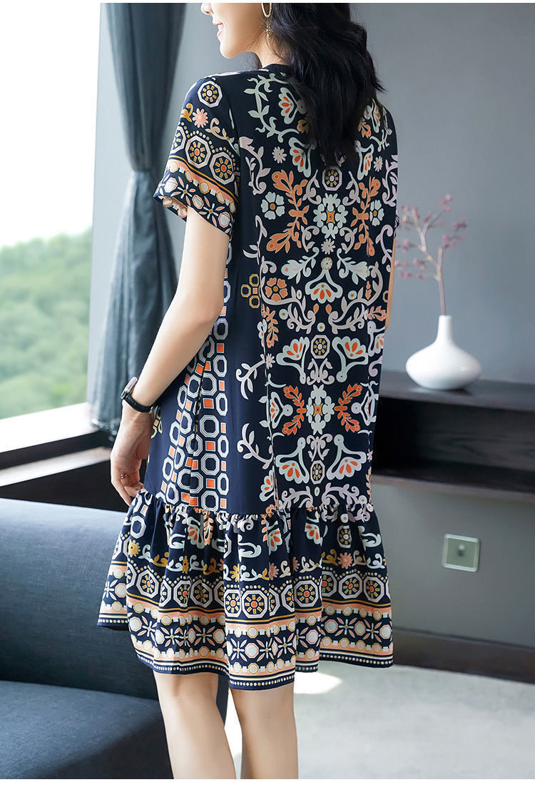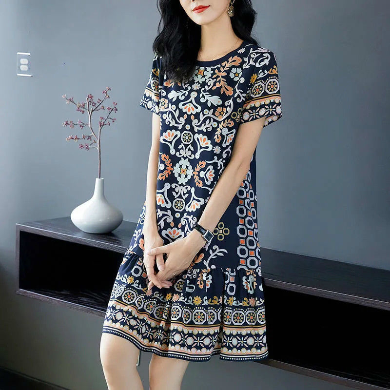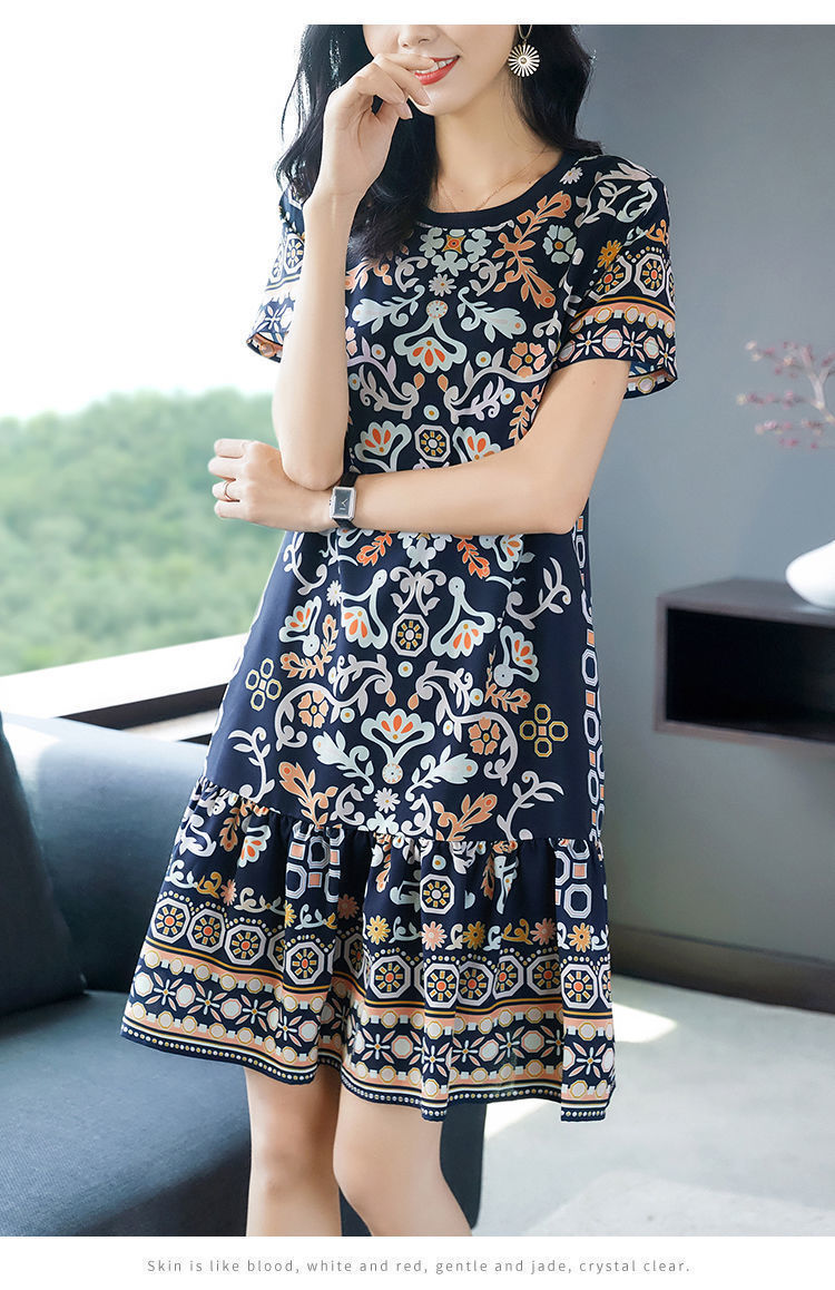 年新款夏季连衣裙女中长款宽松大码气质碎花洋气裙子时尚裙子