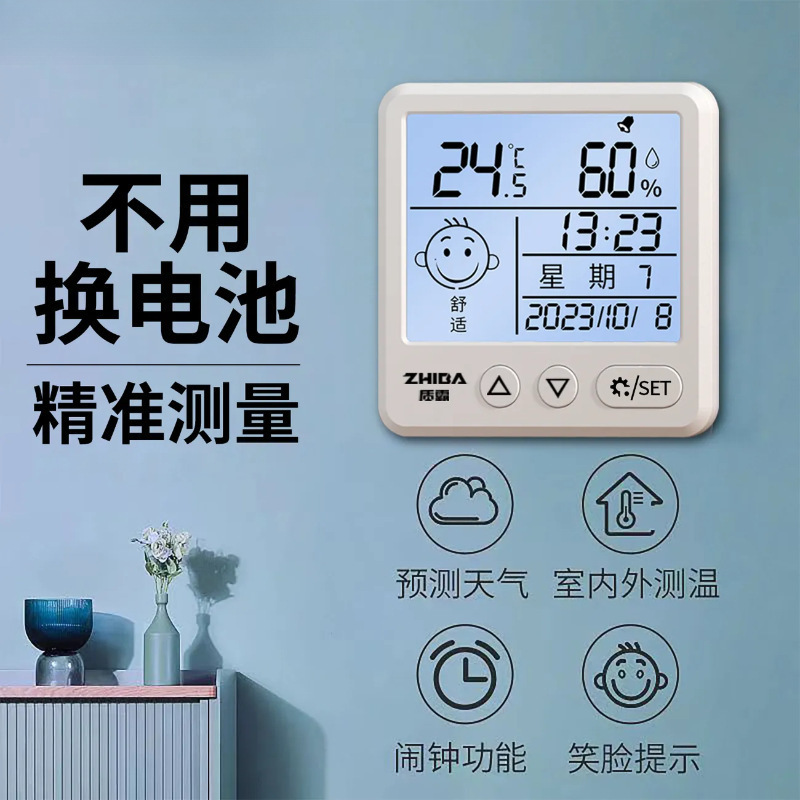 精准数显温度计桌面电子温湿度计闹钟母婴家用壁挂温湿度室内室外