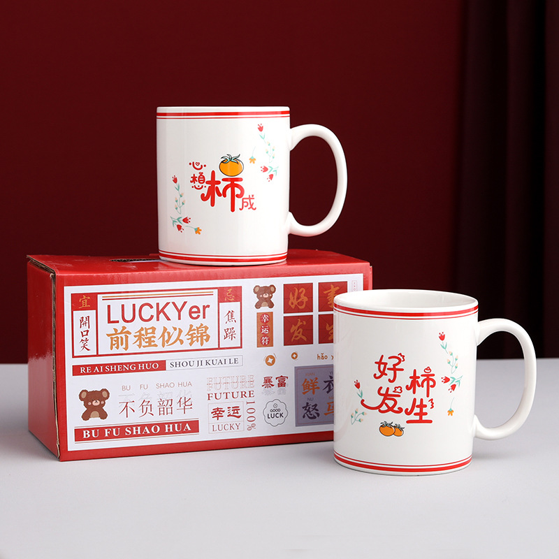 国潮创意文字马克杯情侣杯开业活动礼品陶瓷杯水杯礼盒批发装