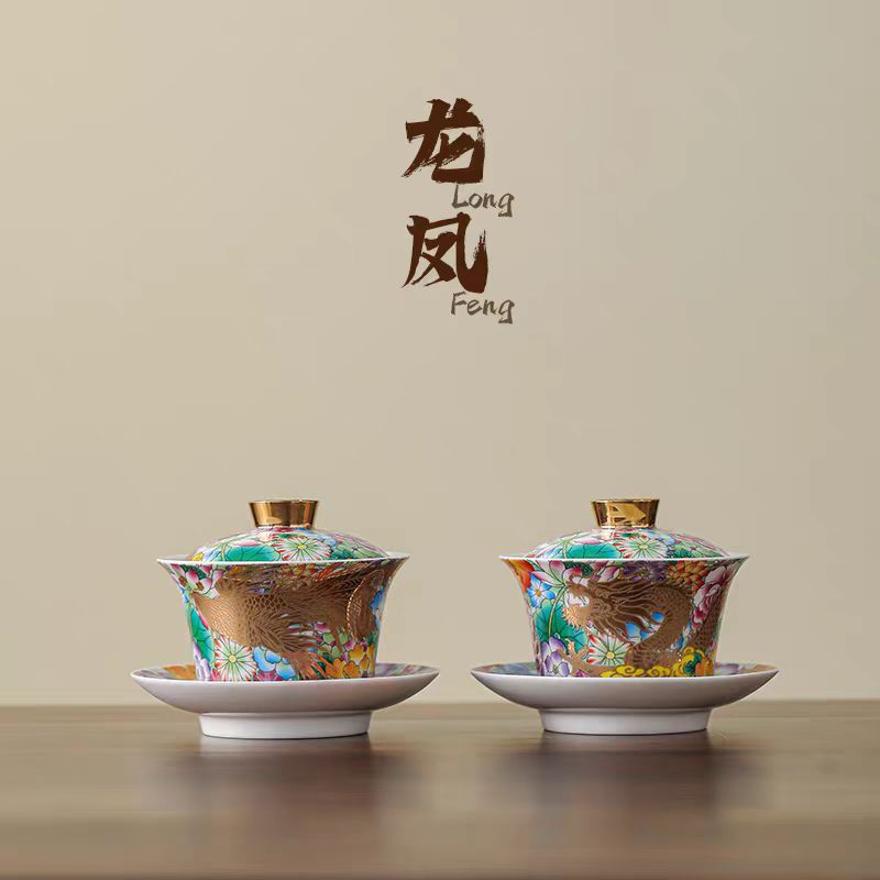 龙凤盖碗金银掐丝珐琅彩盖杯三才泡茶碗功夫茶具结婚敬茶碗