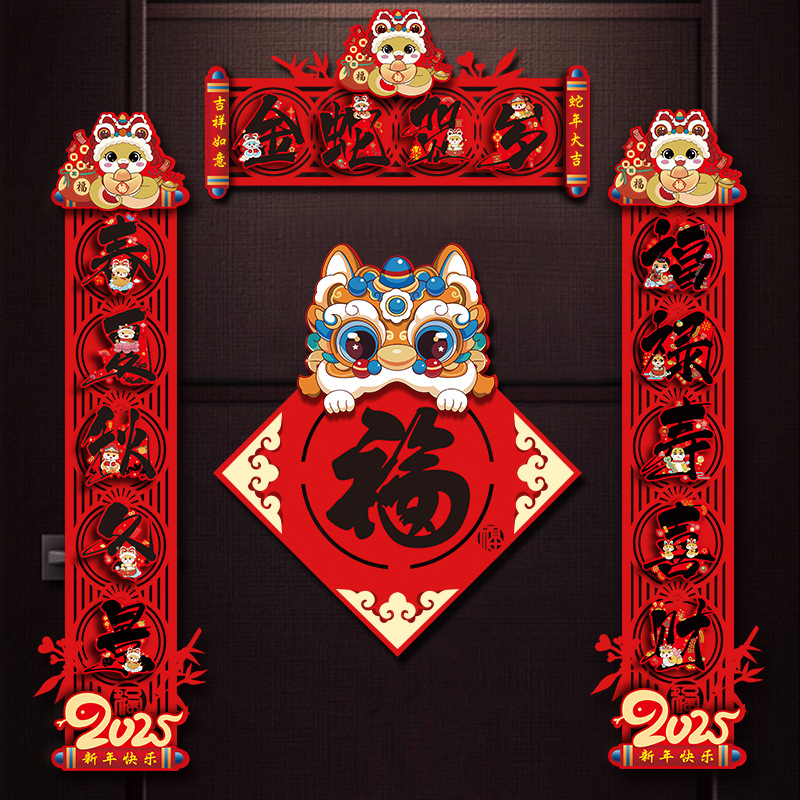 2025春节家用对联蛇年春联高档过年立体新年大门联送挂钩福字门贴