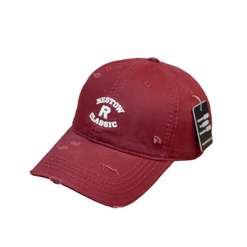网红新款立体R字母刺绣棒球帽男女韩版街头时尚做旧破洞棒球帽潮