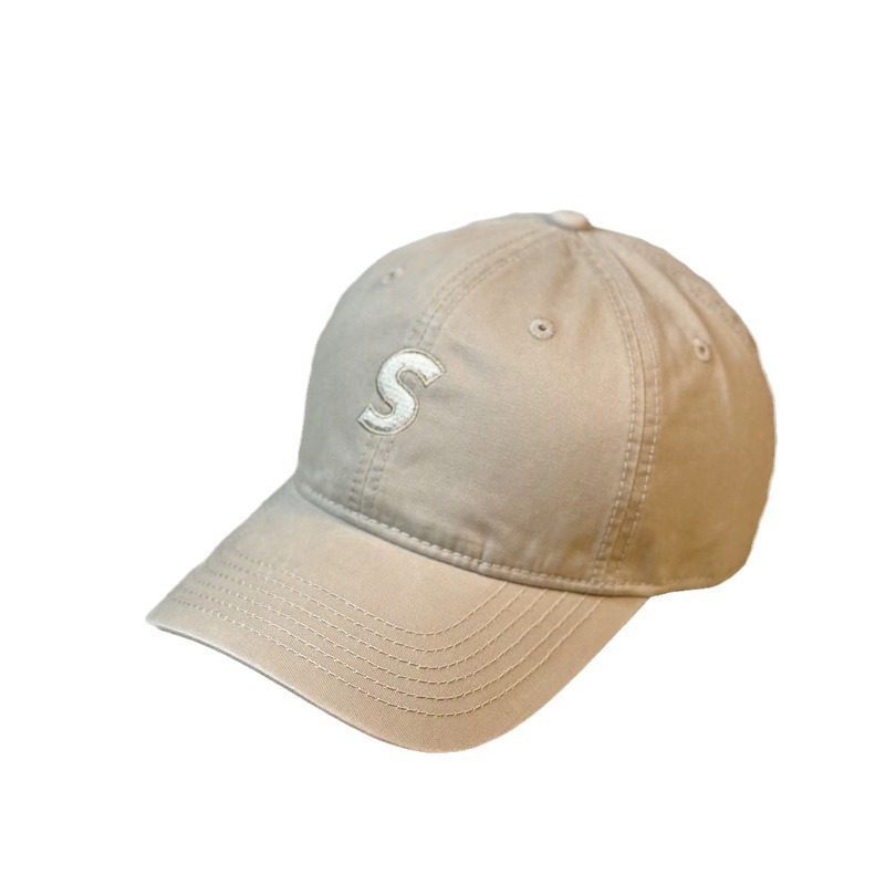 日系复古阿美咔叽棕色字母刺绣鸭舌帽女港风工装软顶休闲棒球帽男