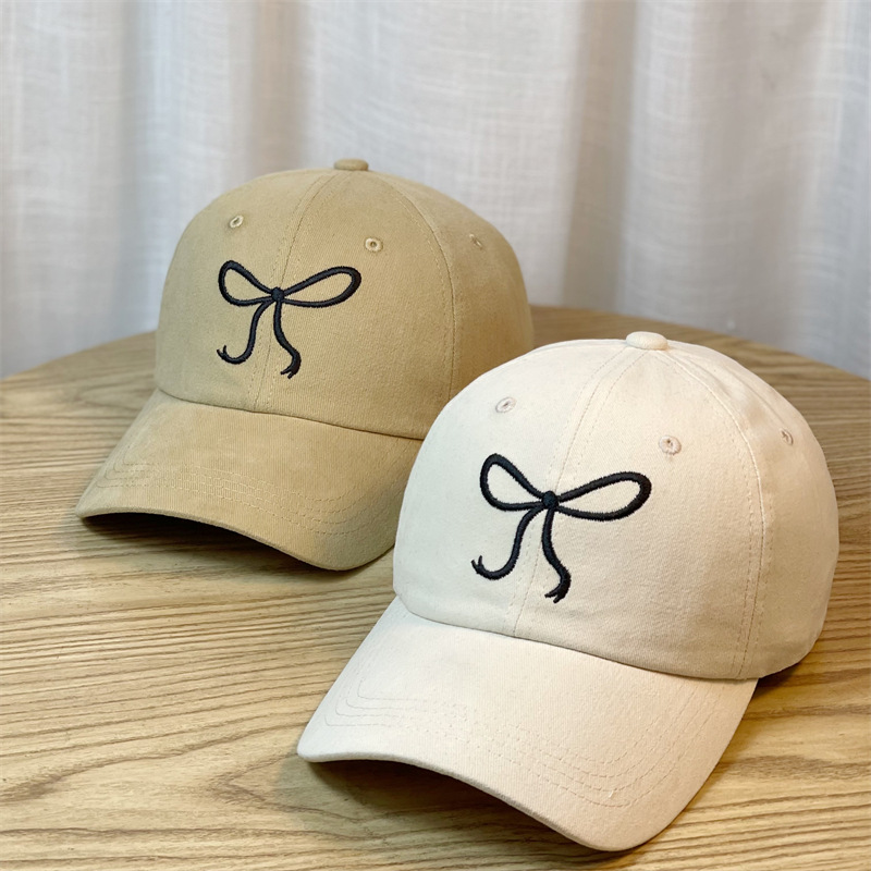 棒球帽女韩版蝴蝶结刺绣帽子春夏季新款方圆脸显脸小鸭舌帽潮