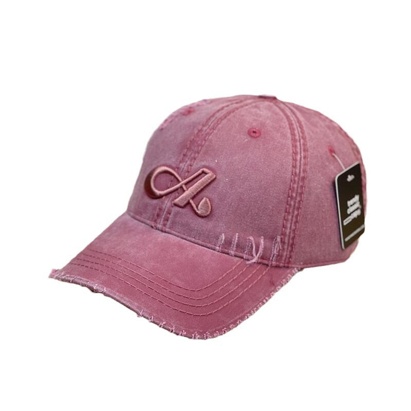 韩版复古做旧棒球帽男女破洞水洗软顶字母刺绣鸭舌帽休闲显脸小潮