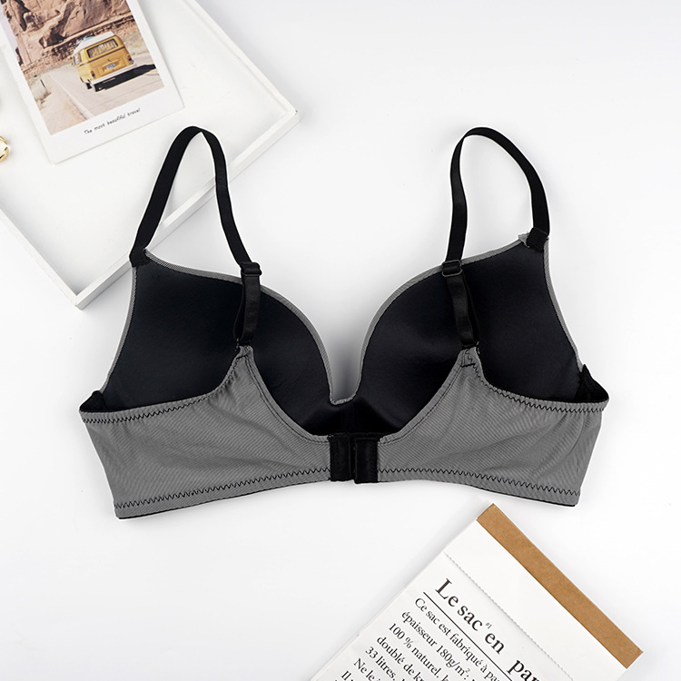 无钢圈文胸时尚舒适光面三排二扣 调整法式内衣性感聚拢小胸