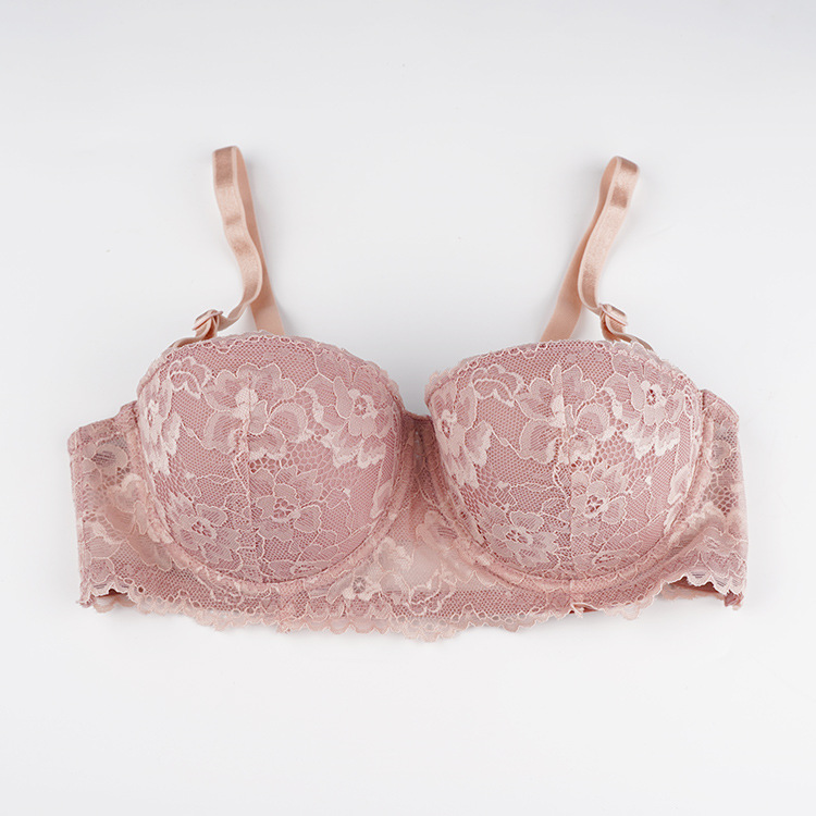 法式蕾丝文胸时尚有钢圈聚拢调整收副乳内衣薄款大胸显小