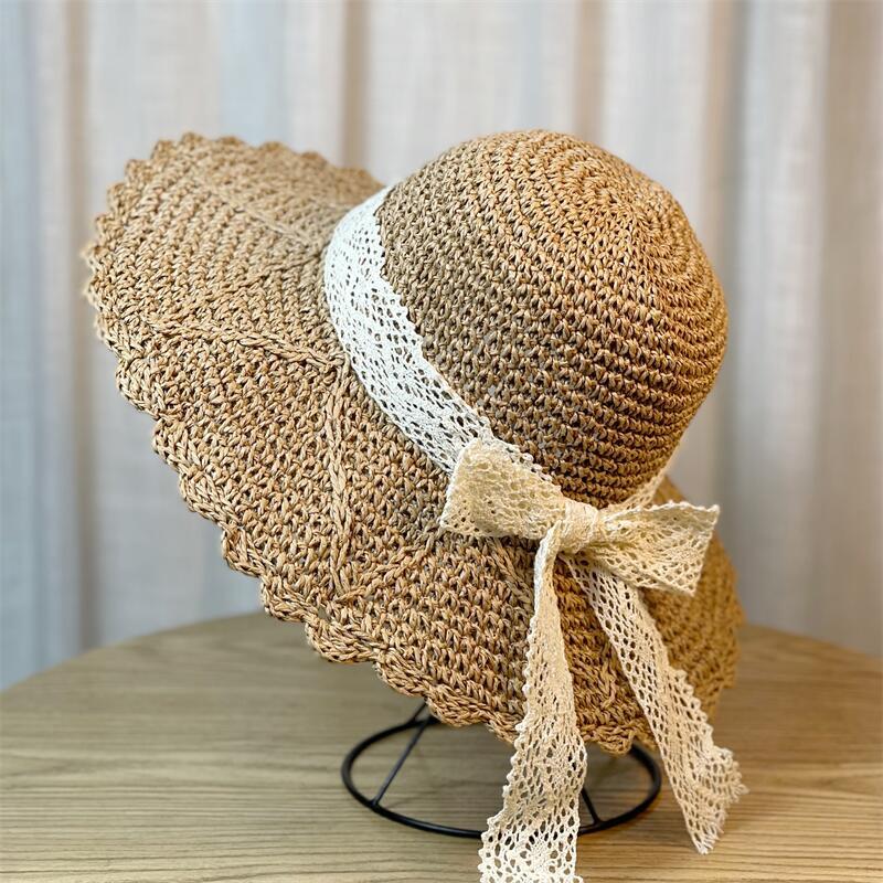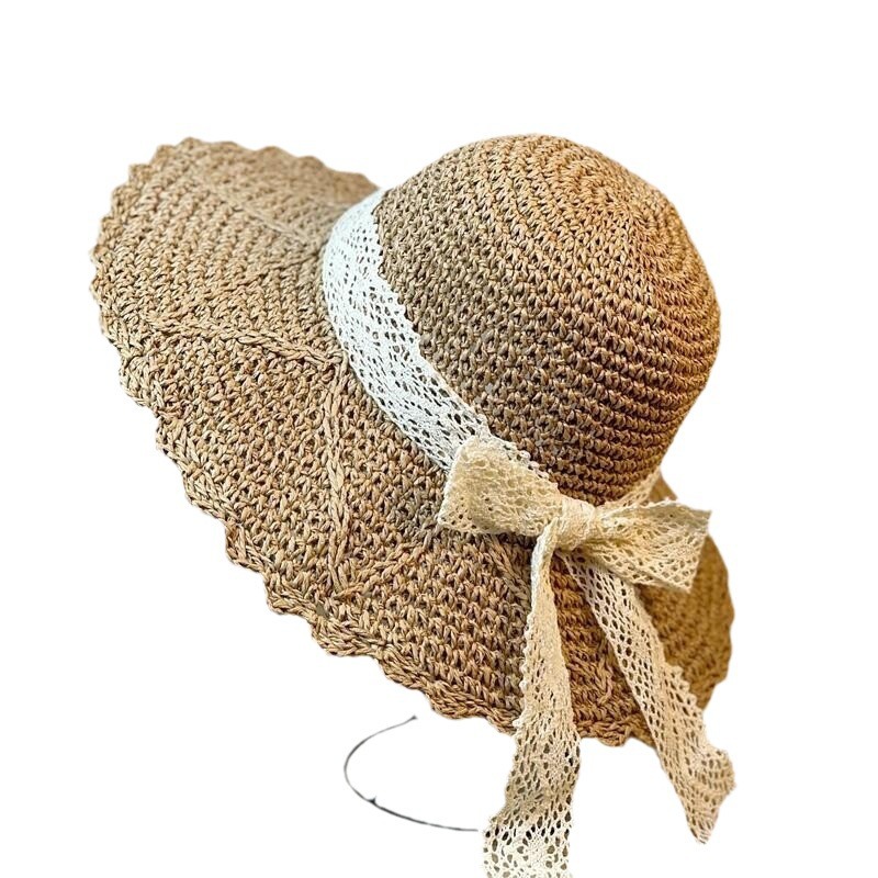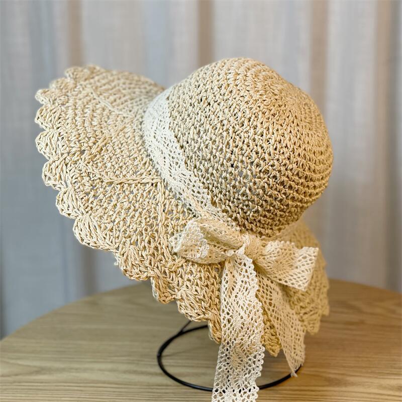 新款网红蕾丝渔夫帽女夏季海边沙滩法式草帽遮阳防晒太阳帽子