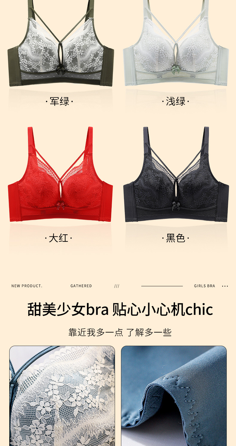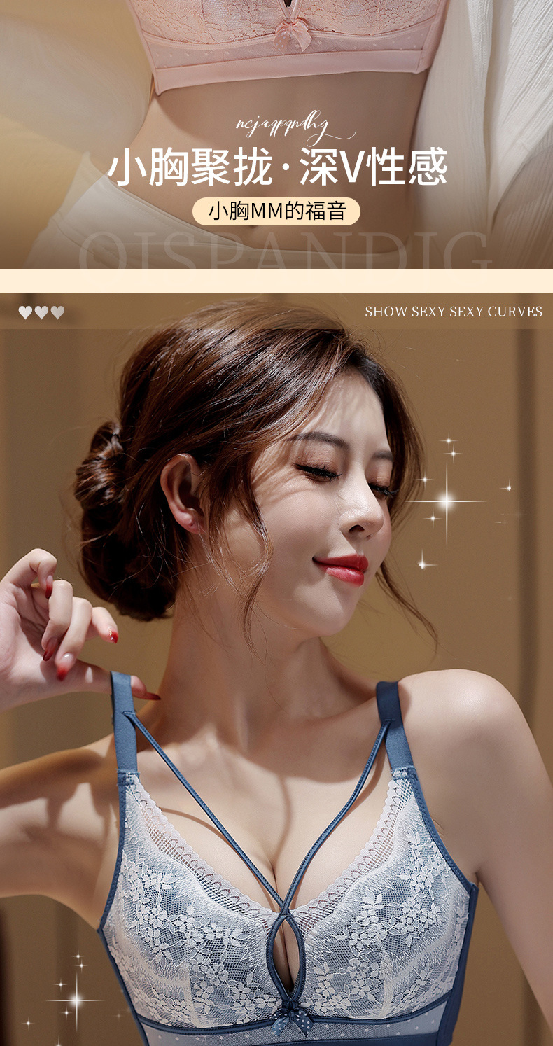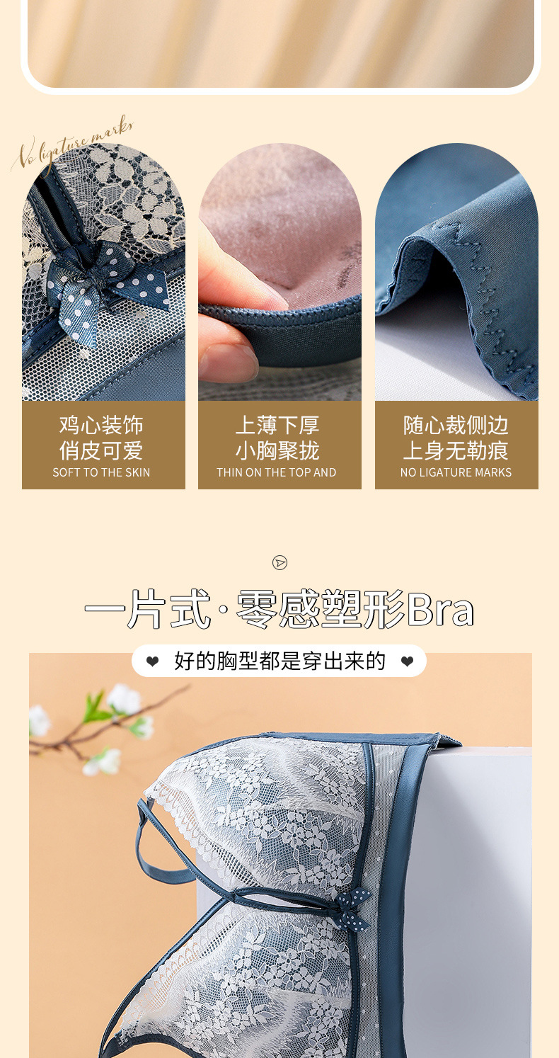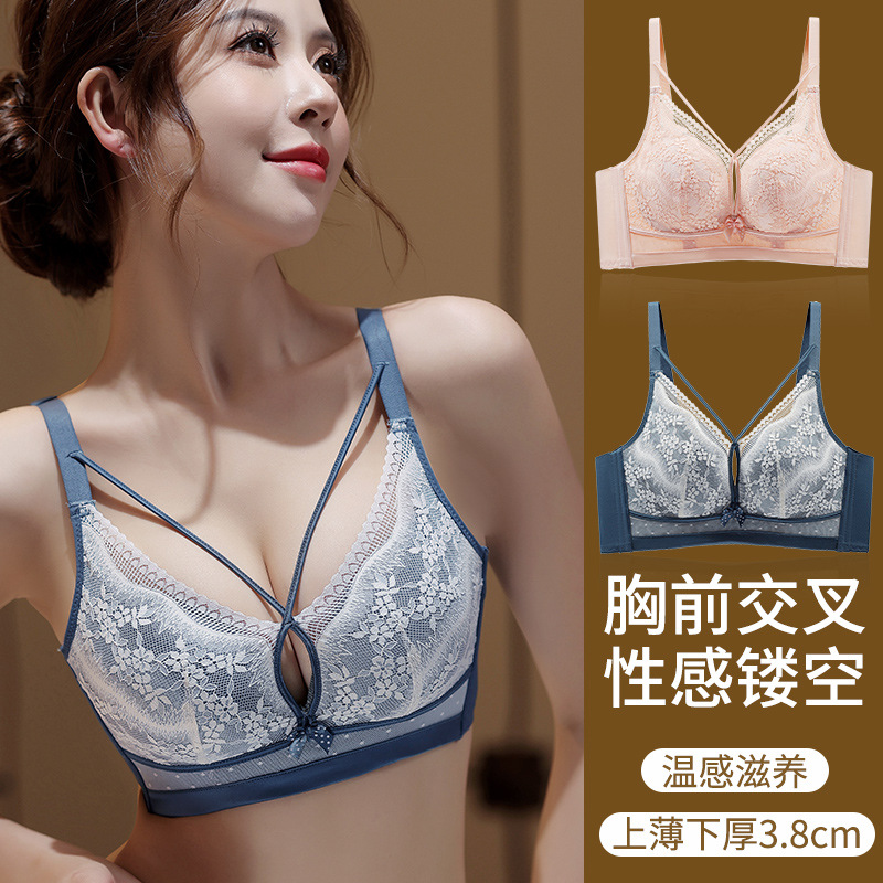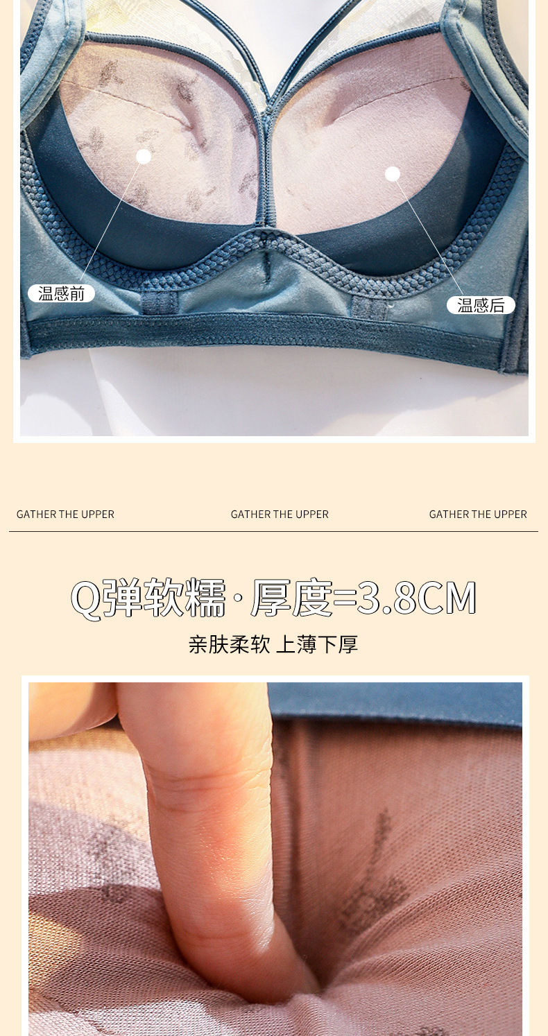 性感美胸温感内衣聚拢上托收副乳调整型文胸浪漫蕾丝杯面3.8中厚