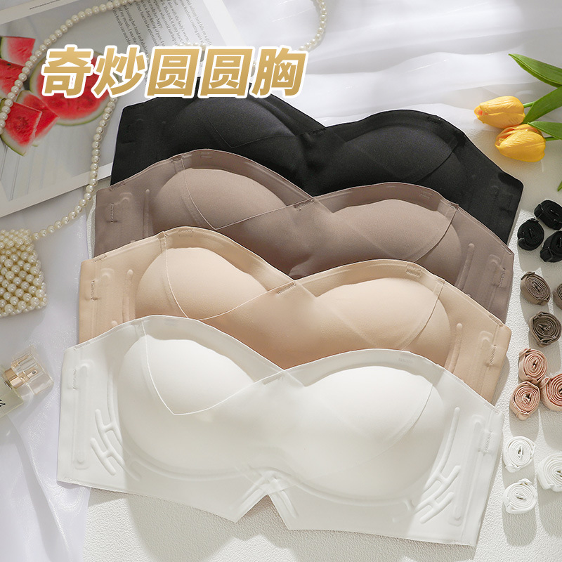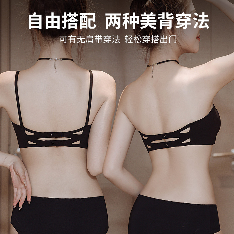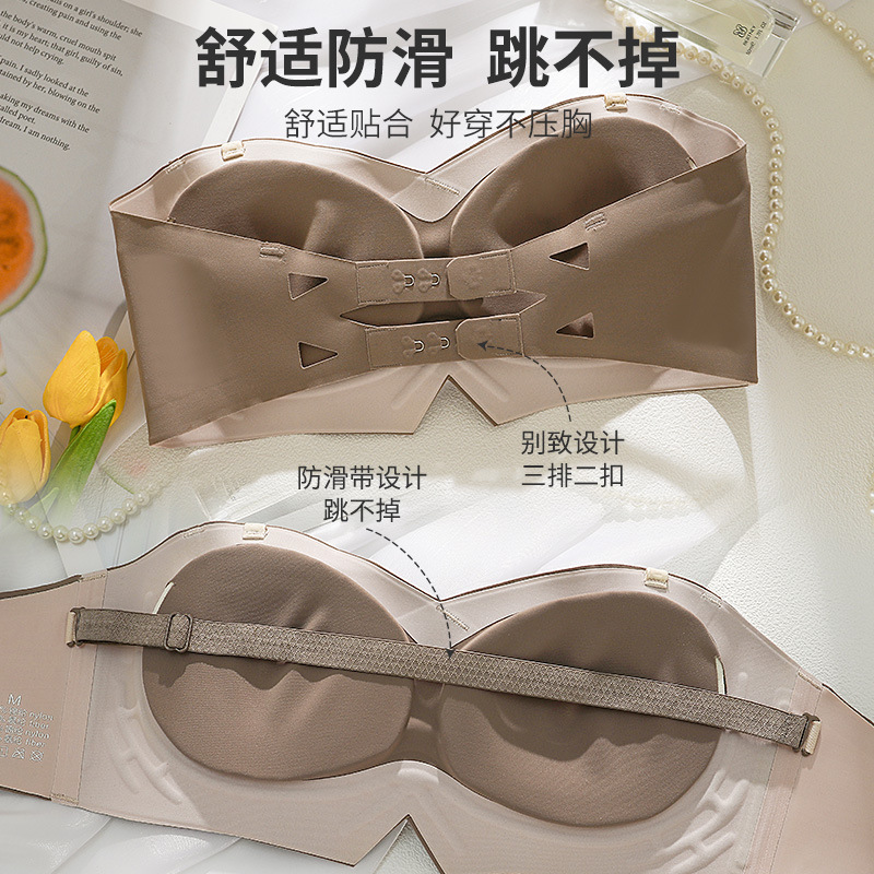 小胸聚拢无钢圈无肩带内衣女抹胸无痕防滑防跑杯上托美背隐形文胸