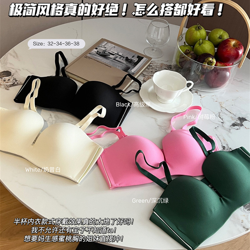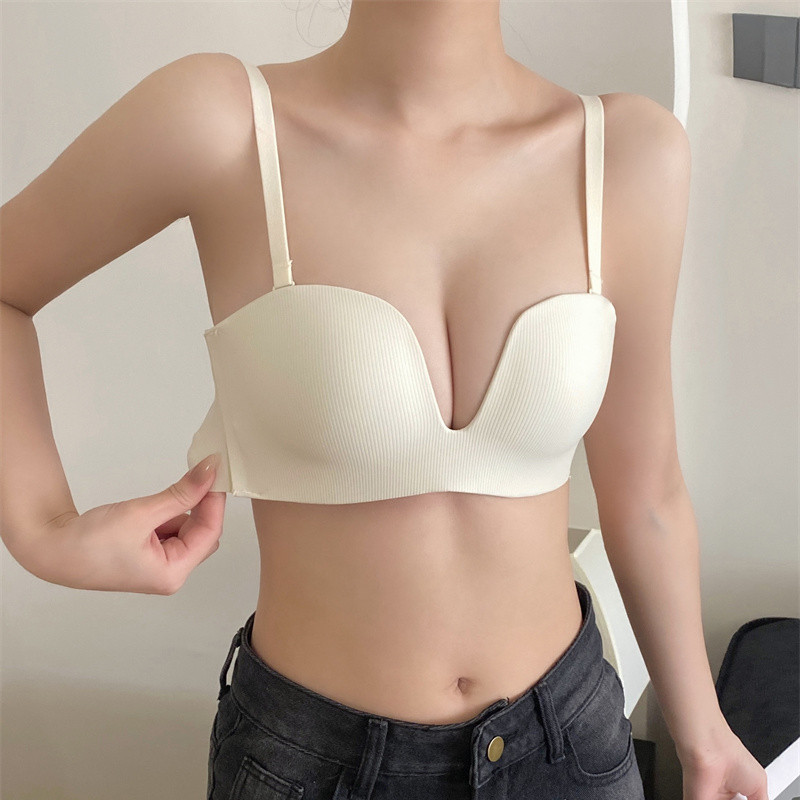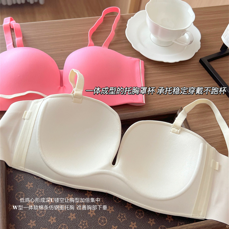 无痕无肩带内衣女薄款小胸聚拢无钢圈防滑上托防下垂收副乳文胸罩