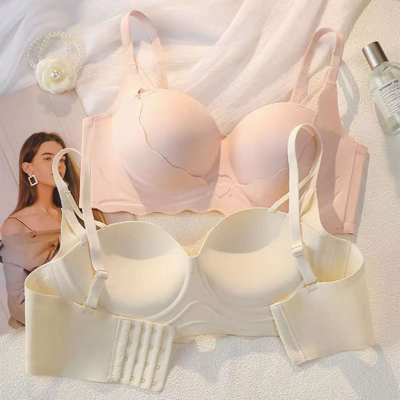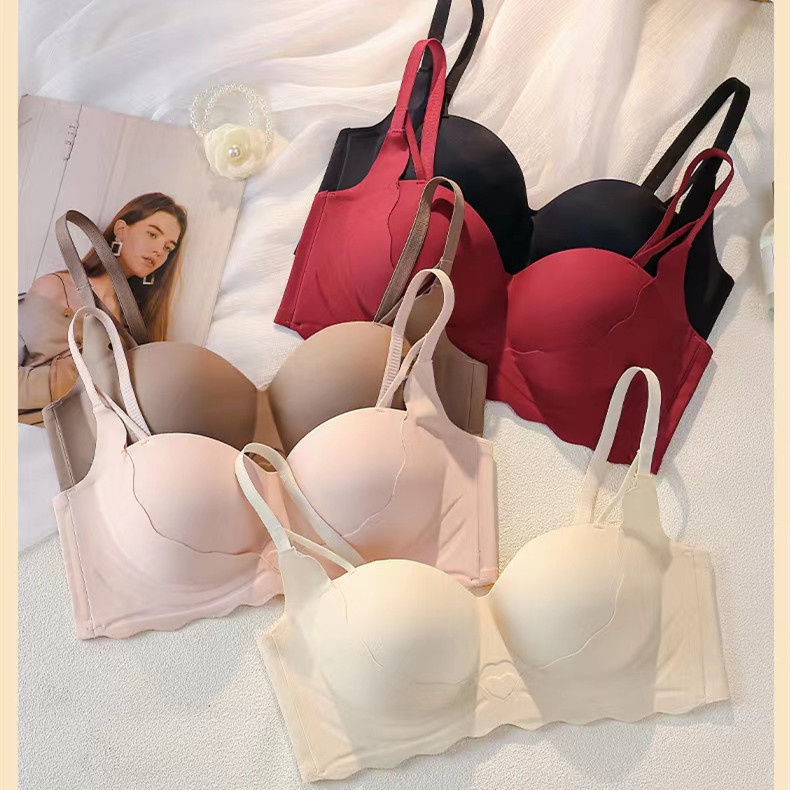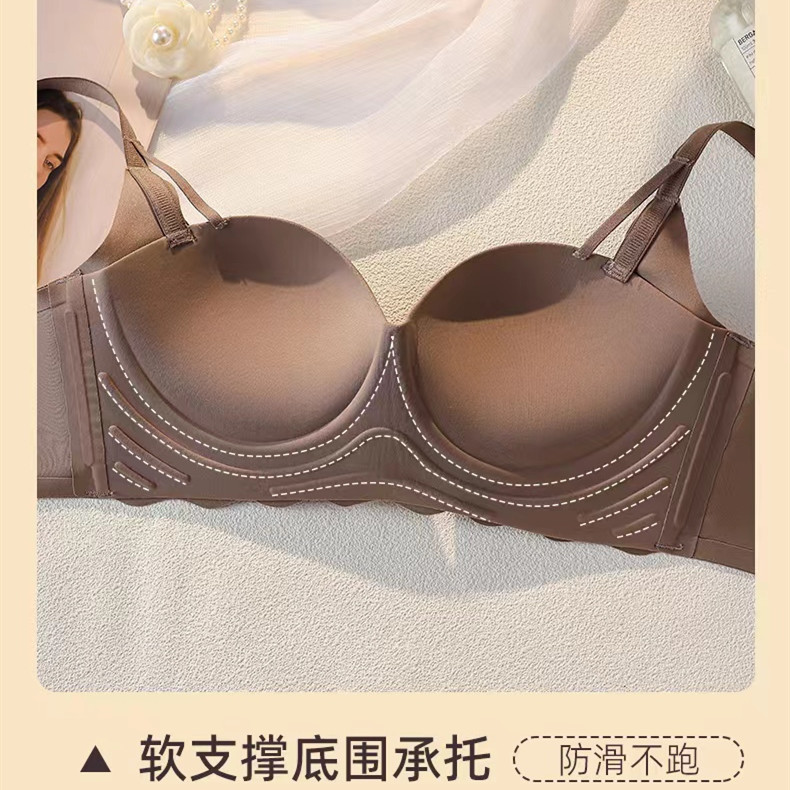 无痕内衣女小胸聚拢显大上托提拉防下垂无钢圈收副乳大红色文胸罩