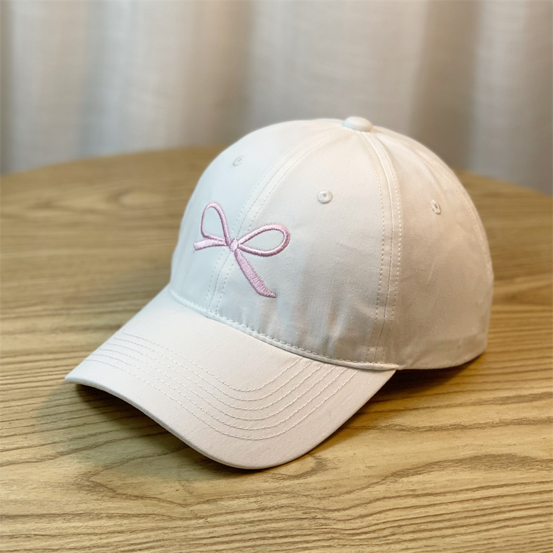 年新款弯檐鸭舌帽子女立体刺绣蝴蝶结遮阳防晒棒球帽软顶百搭