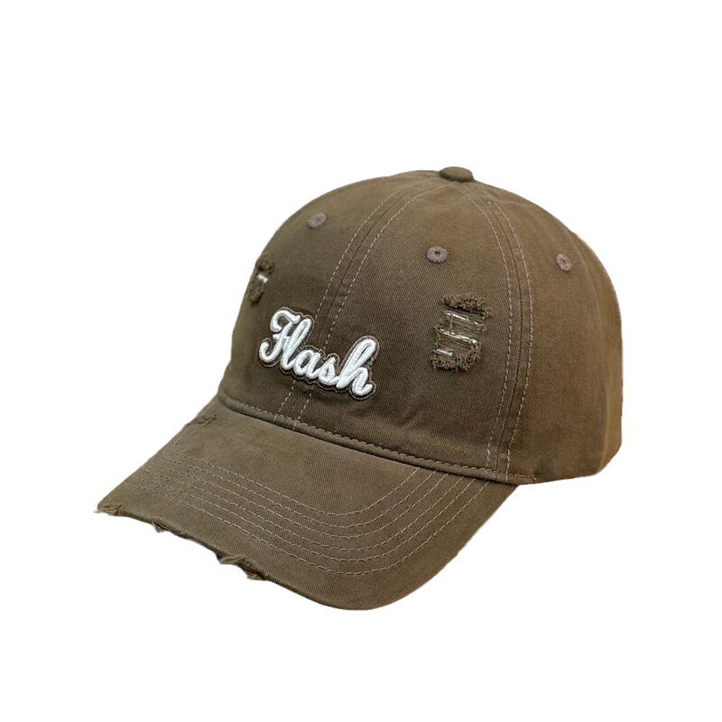 新款美式复古做旧棒球帽女大头围水洗破洞牛仔鸭舌帽显脸小帽子潮