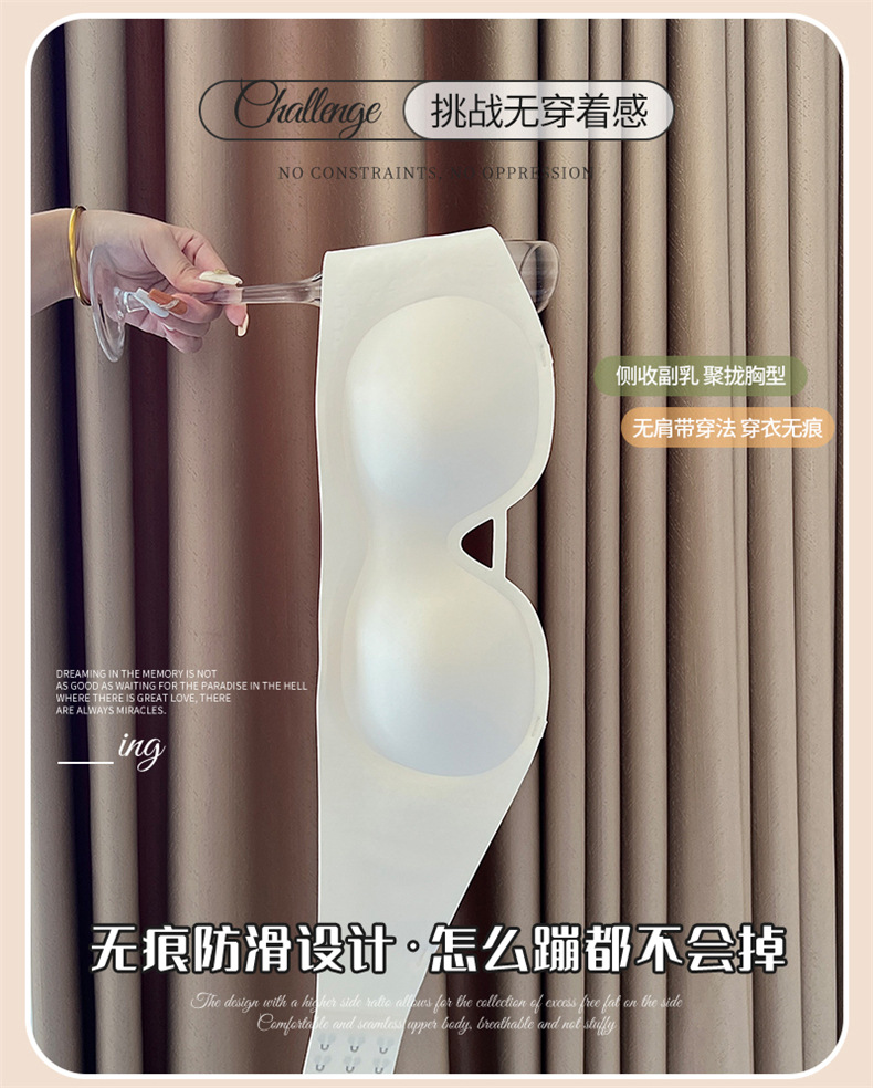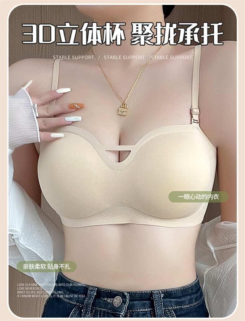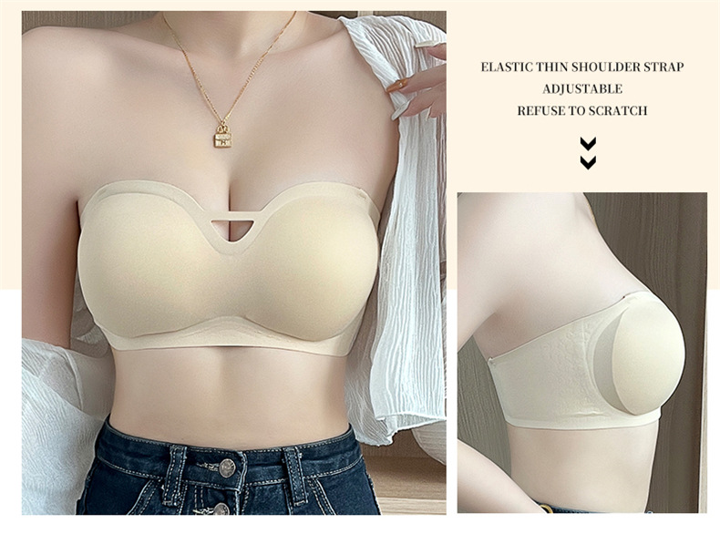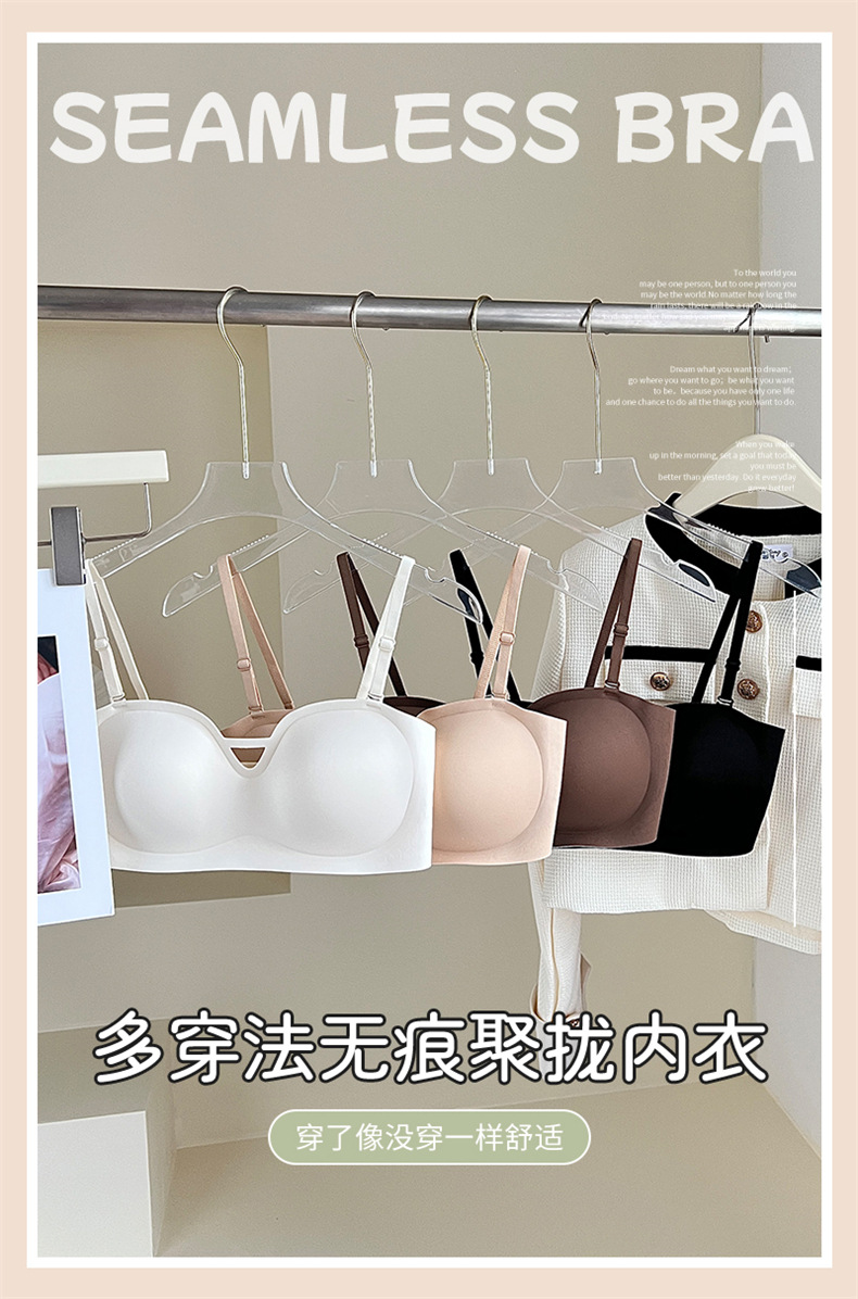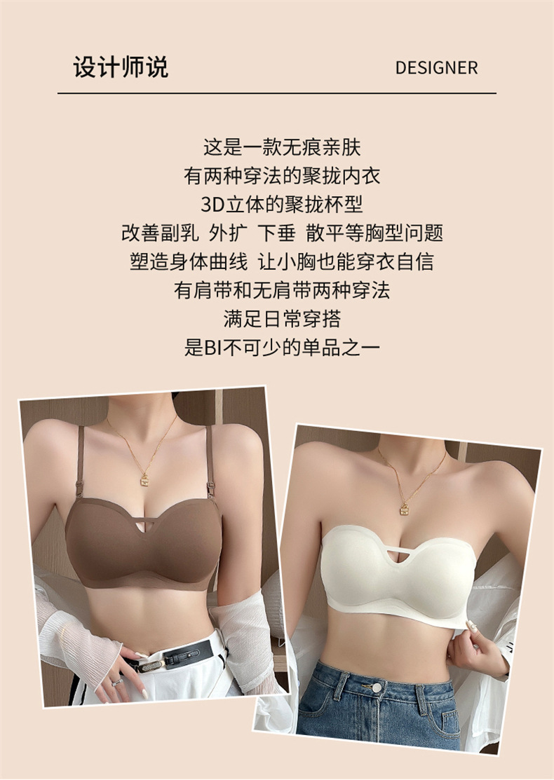 夏季可拆肩带内衣女聚拢无痕软支撑无钢圈上托防滑裹胸抹胸文胸罩