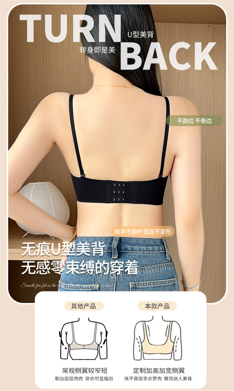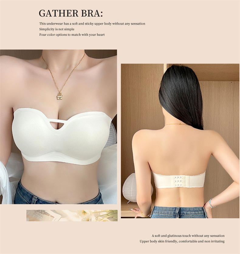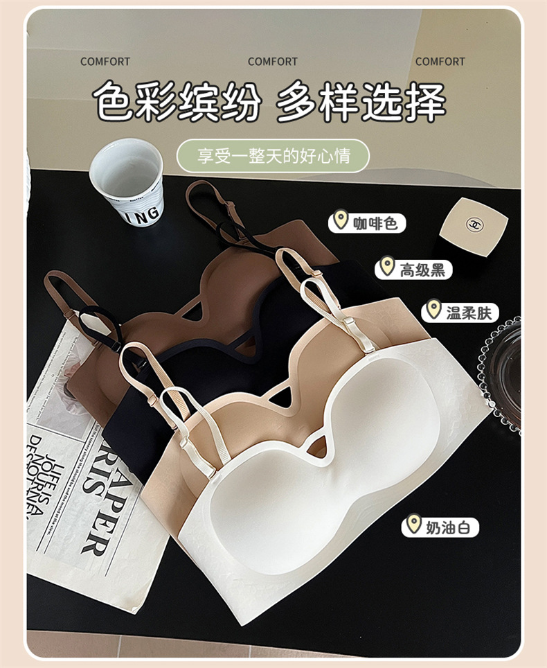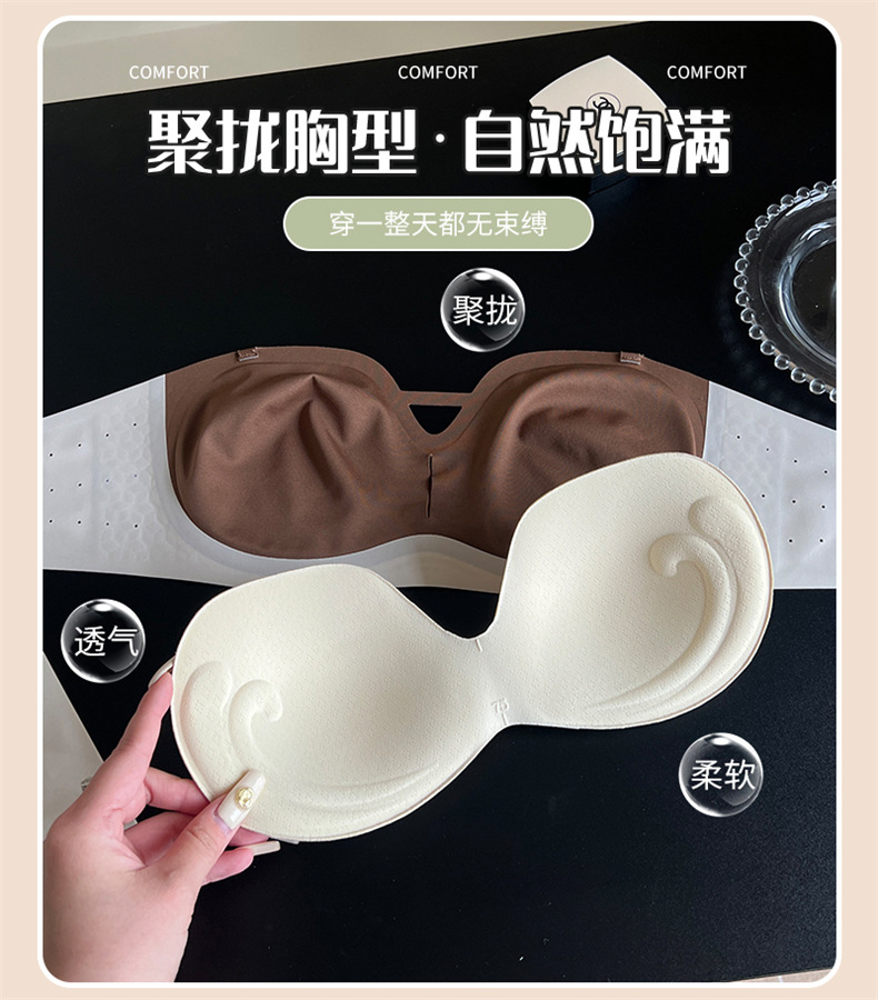夏季可拆肩带内衣女聚拢无痕软支撑无钢圈上托防滑裹胸抹胸文胸罩