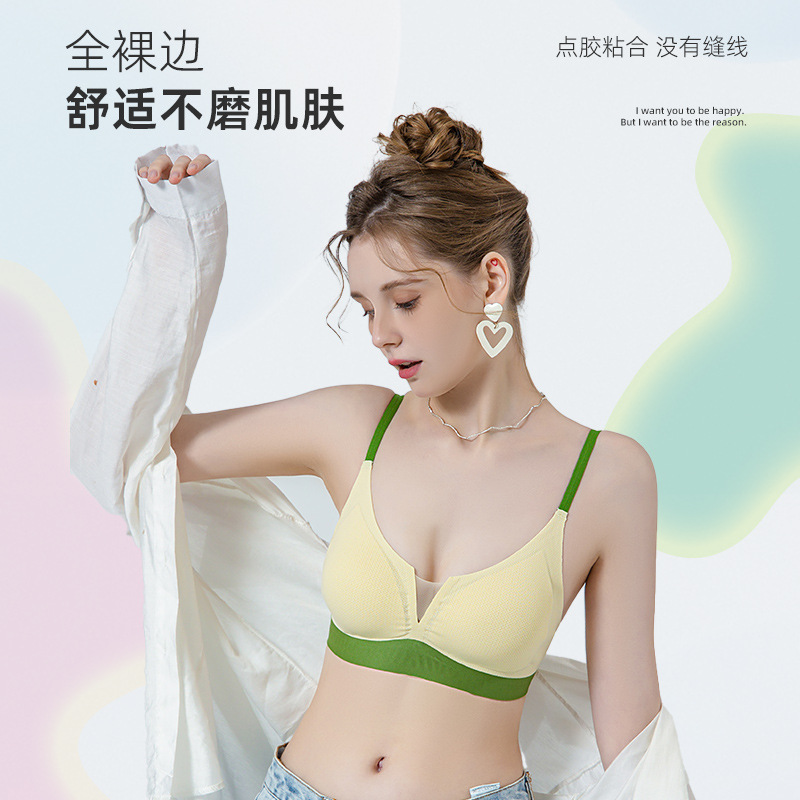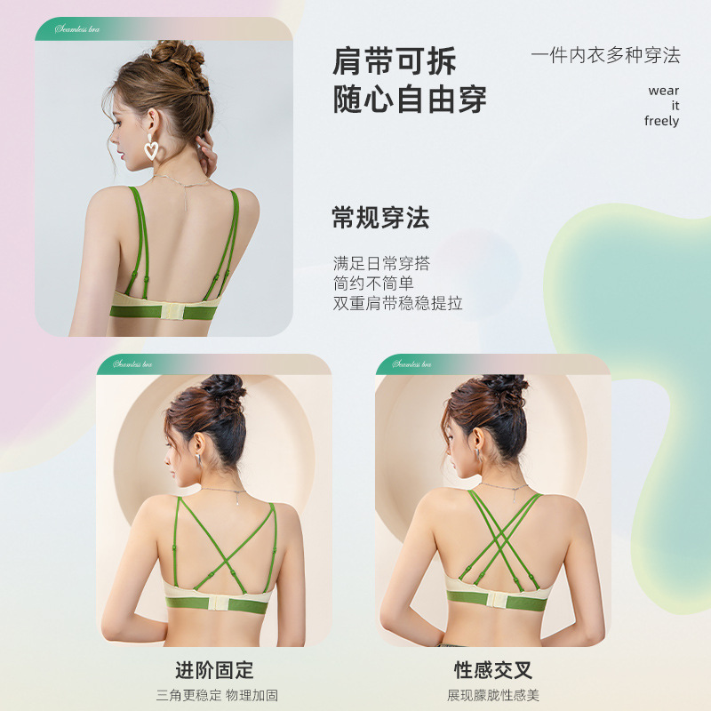 内衣女可拆卸美背肩带无痕无钢圈褶皱网纱拼接薄款性感夏季文胸罩
