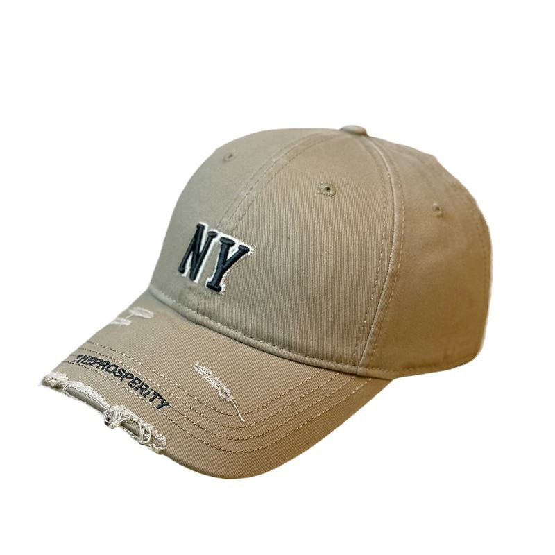 新款鸭舌帽女四季适用帽子复古破边潮流字母韩版弯檐帽硬顶棒球帽
