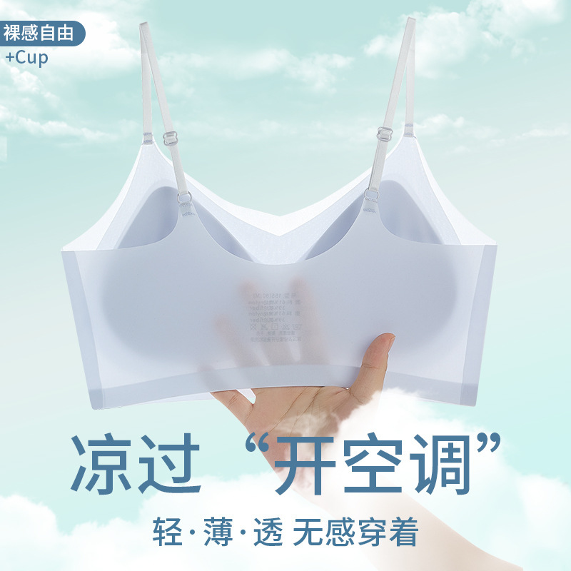 20D夏季超薄冰丝裸感无痕美背女内衣透气抹胸大胸显小固定杯聚拢