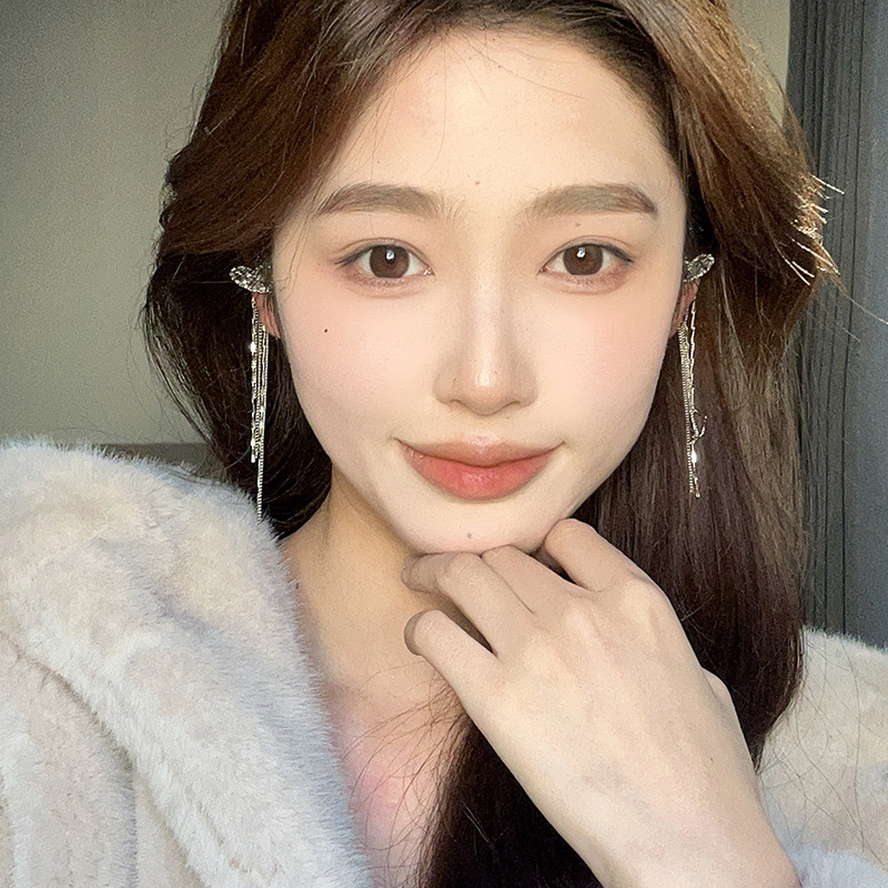 气质锆石爱心流苏耳夹新款爆闪独特耳环轻奢小众高级感耳饰