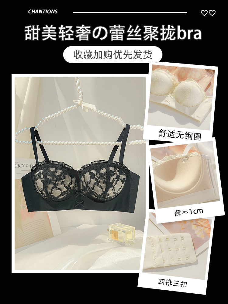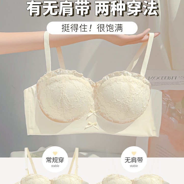无肩带内衣少女风清纯抹胸不掉性感小胸聚拢胸罩防下垂无钢圈文胸