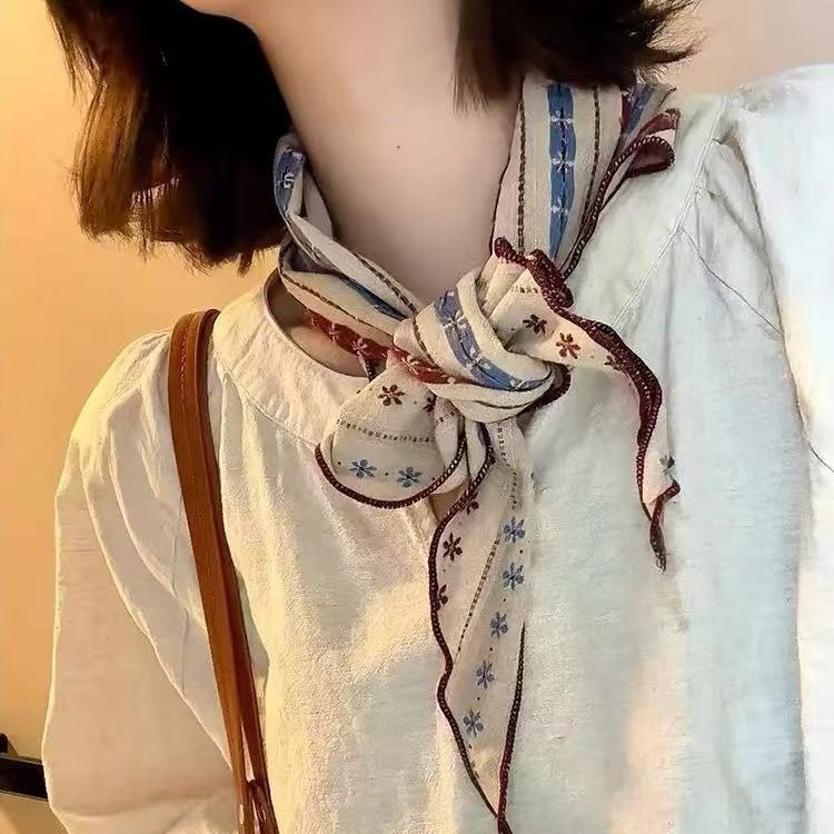 文艺风春夏三角巾纯色头巾护颈小领巾丝巾百搭韩版拍照搭配丝巾