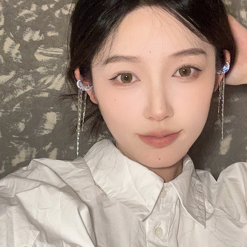 月神降临长款流苏月亮锆石耳夹女气质轻奢高级感无耳洞耳骨夹耳饰