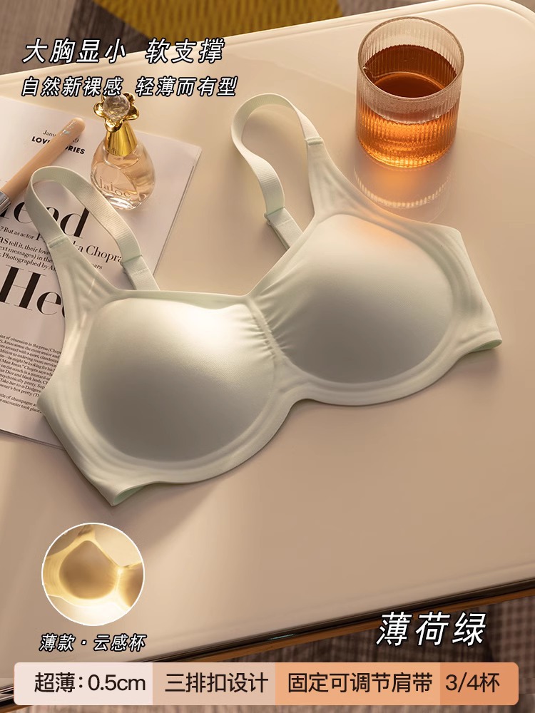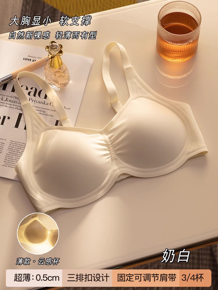 云感薄款裸感内衣女大胸显小无痕聚拢无钢圈收副乳防下垂上托文胸