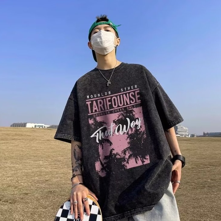男生短袖ins潮牌t恤美式上衣夏季宽松半袖男士体恤港风青少年