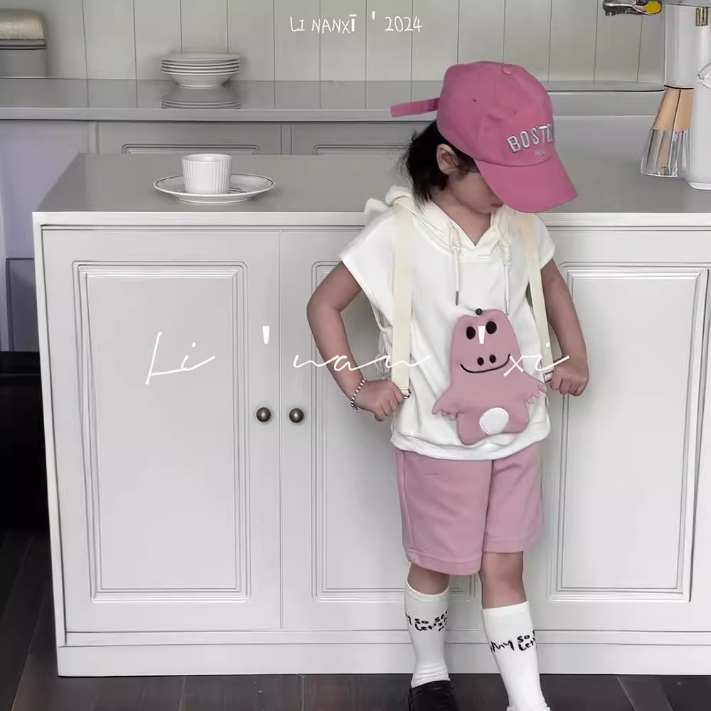 be top童装新款韩版夏装立体恐龙男童套装儿童两件套
