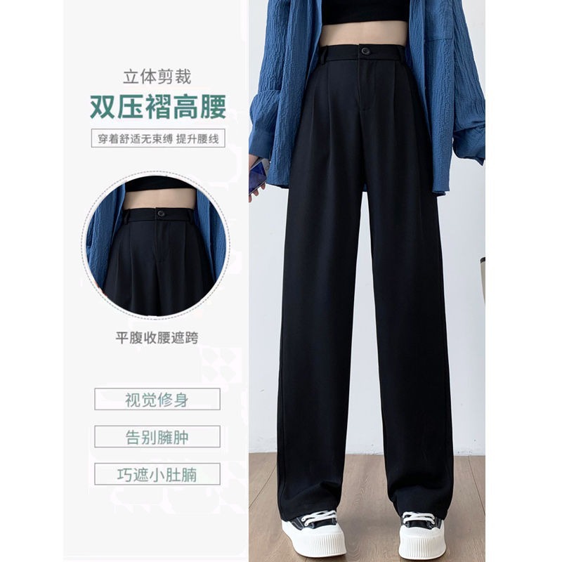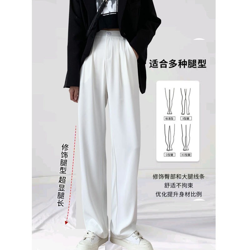 白色阔腿裤子女春秋新款高腰垂感显瘦休闲宽松直筒拖地西装裤