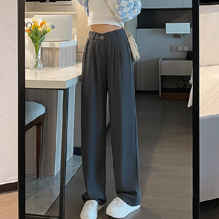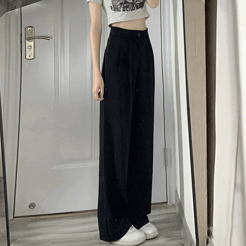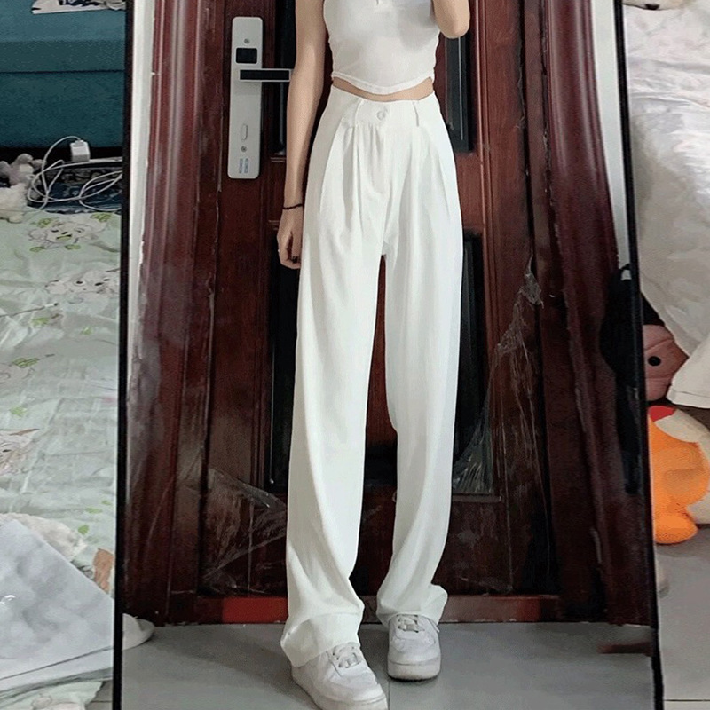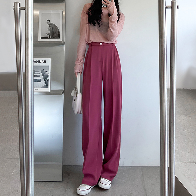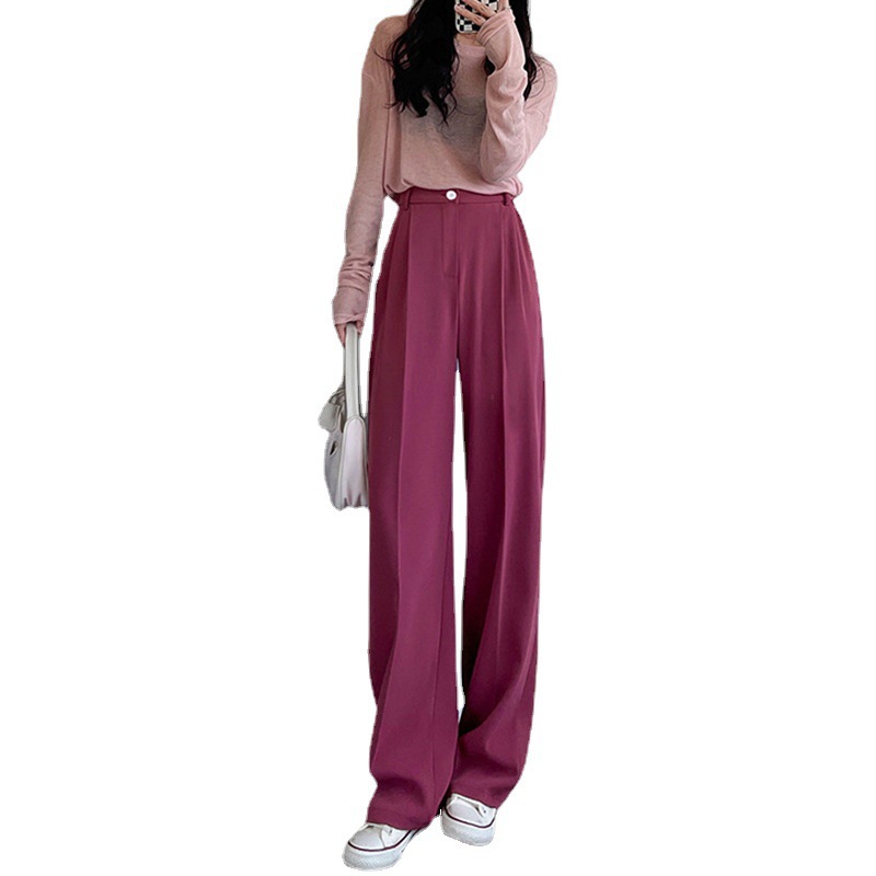 粉色拖地休闲裤女夏季新款高腰直筒阔腿宽松垂感长裤西装裤子